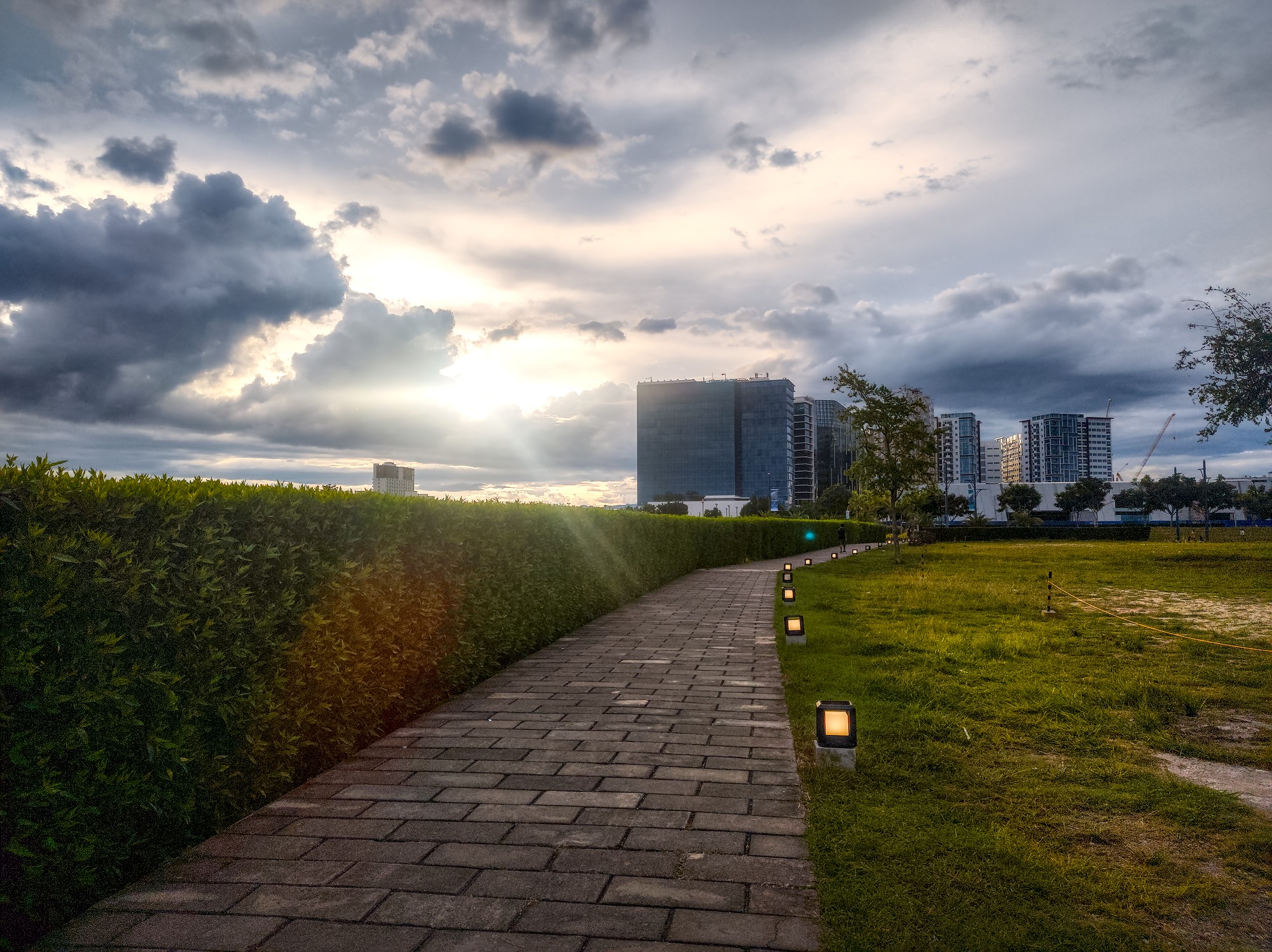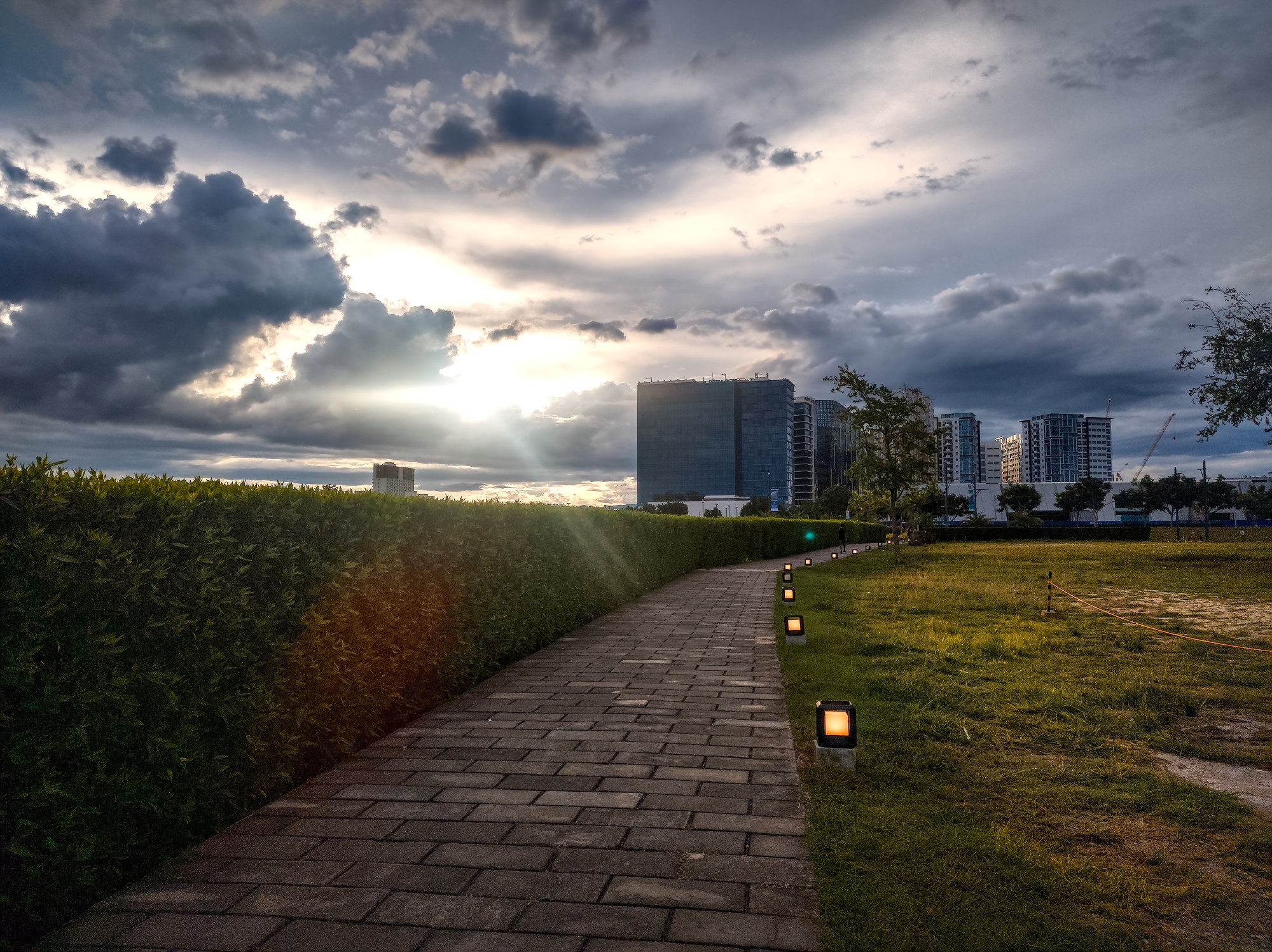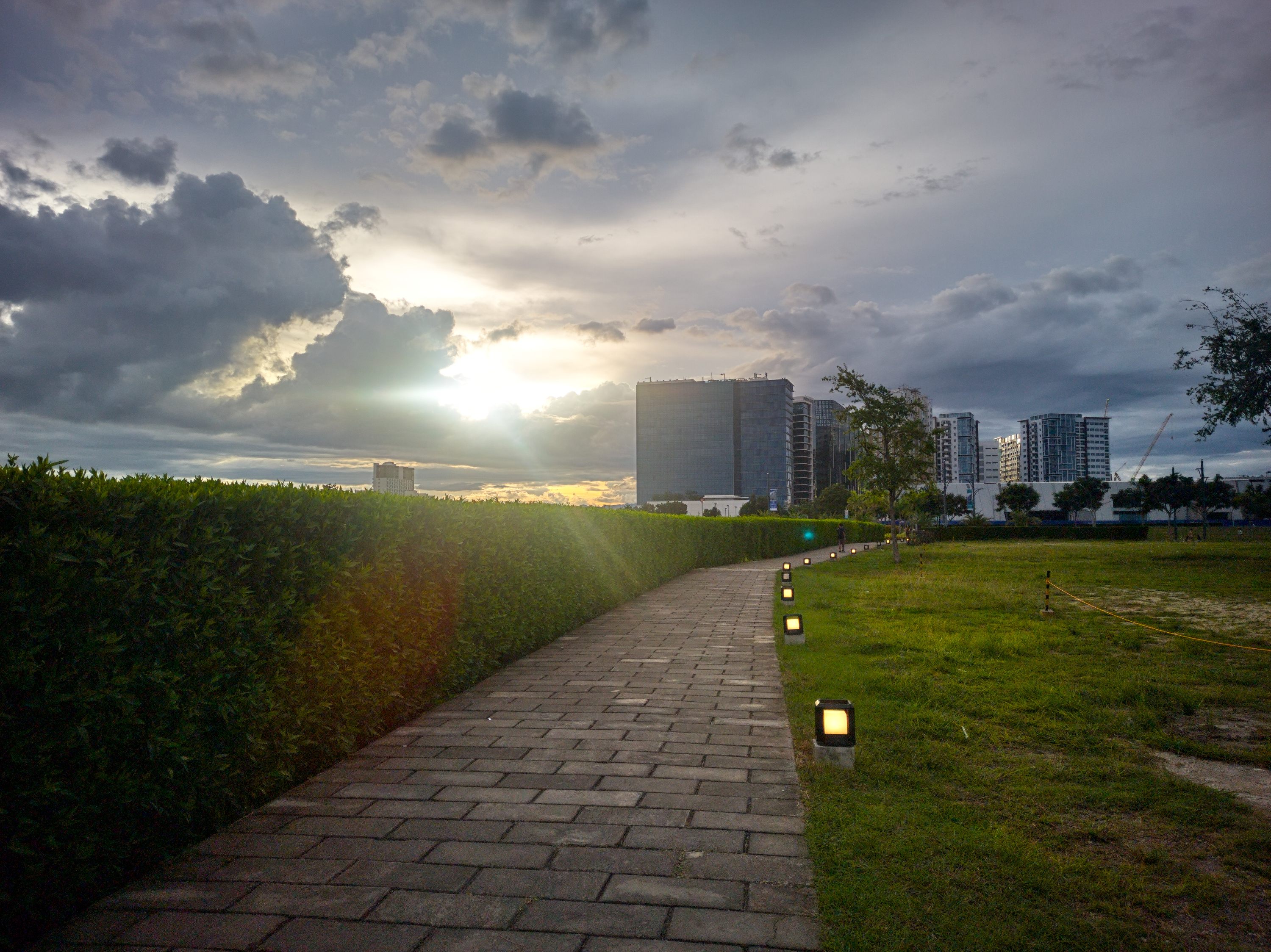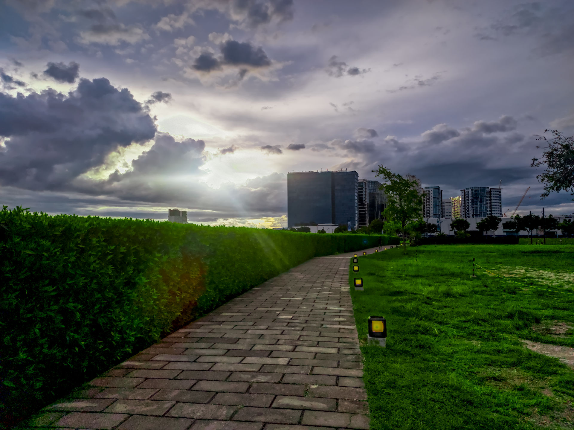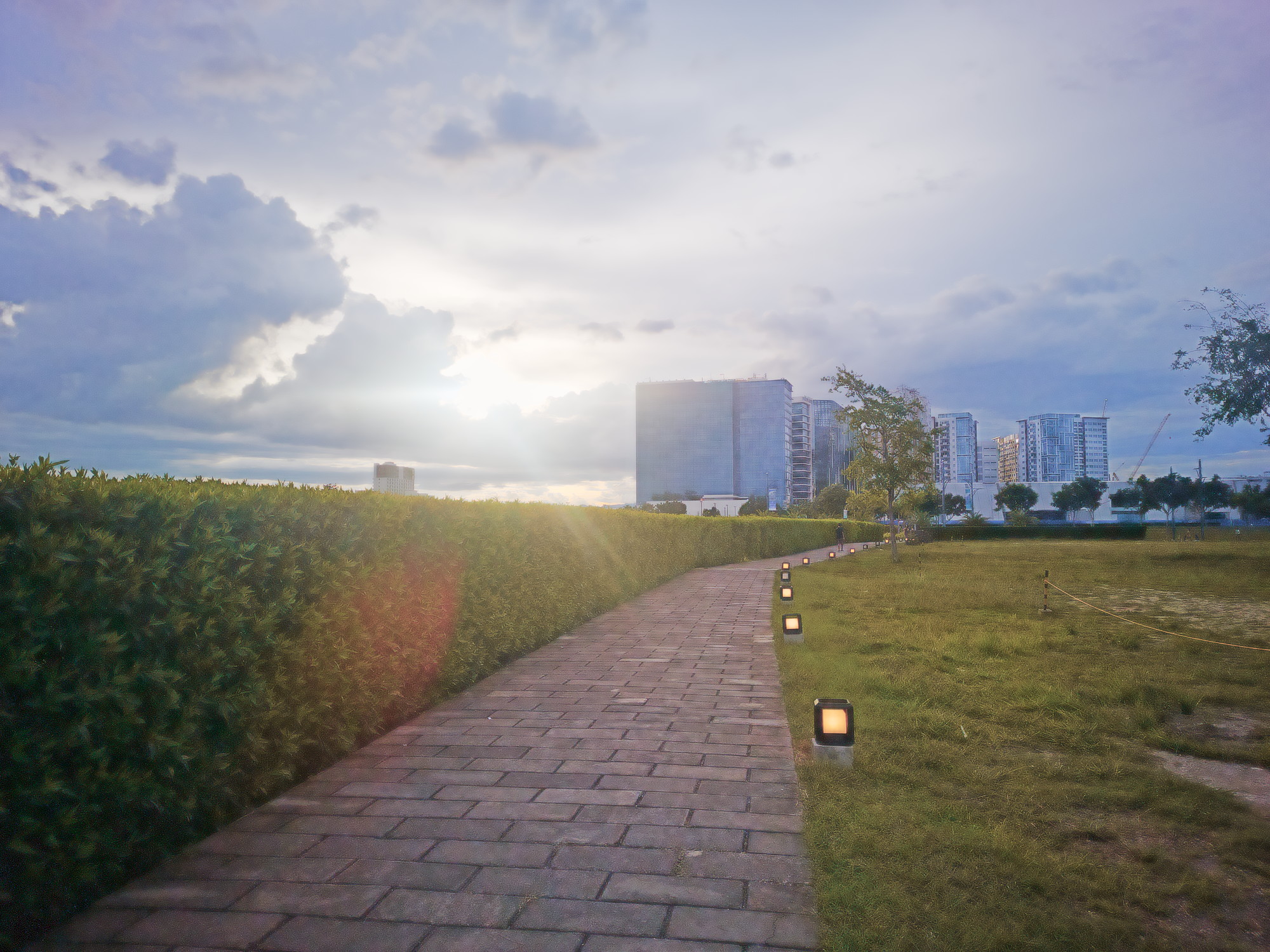 I think, with a bit more tinkering, it can do even better - for example, more dramatic clouds, better color preservation of the lights along the path, more structure of the pavement.
