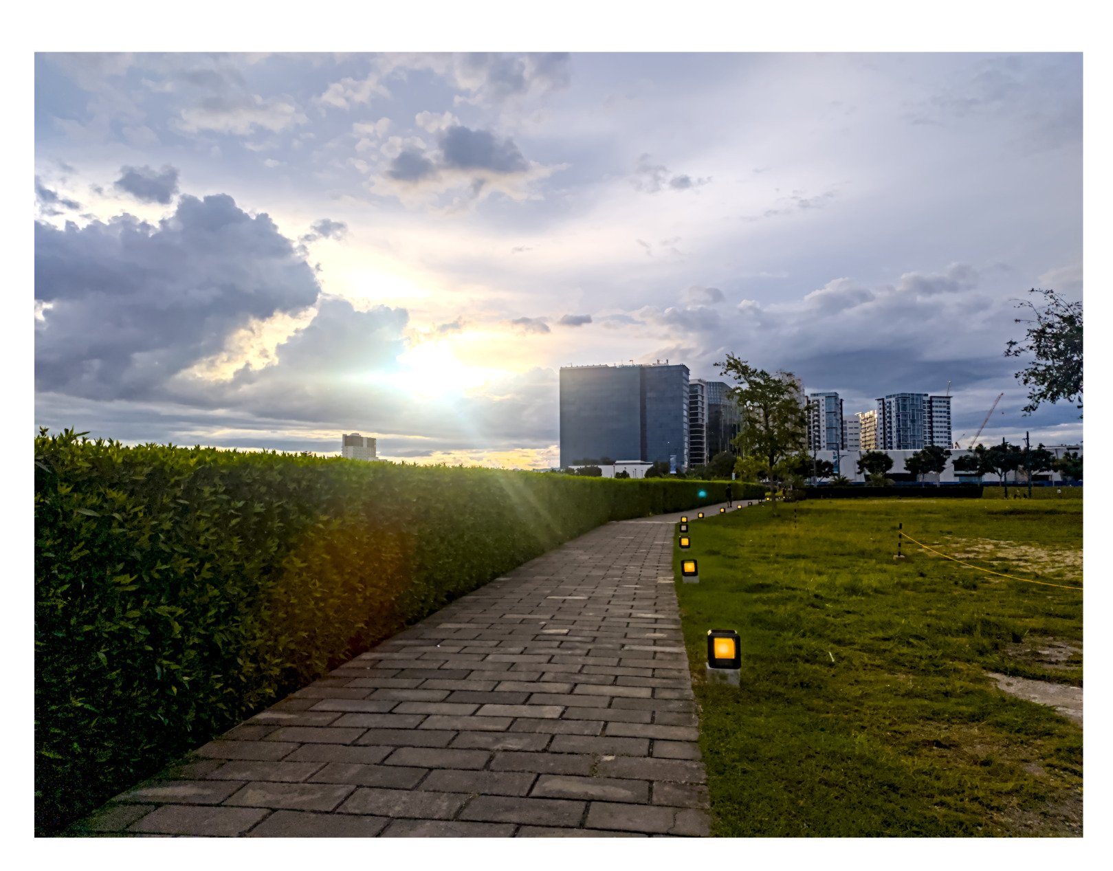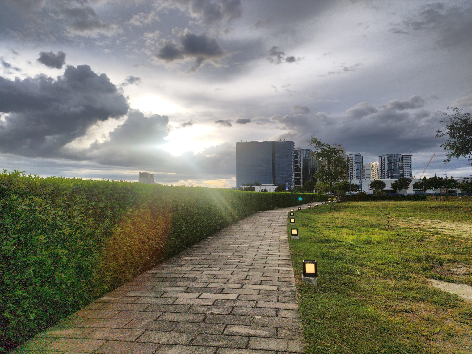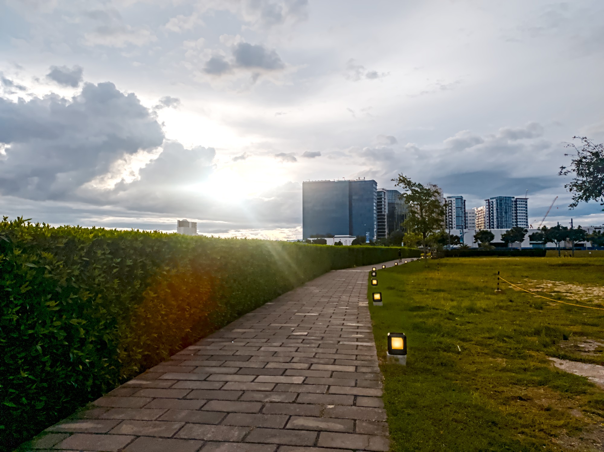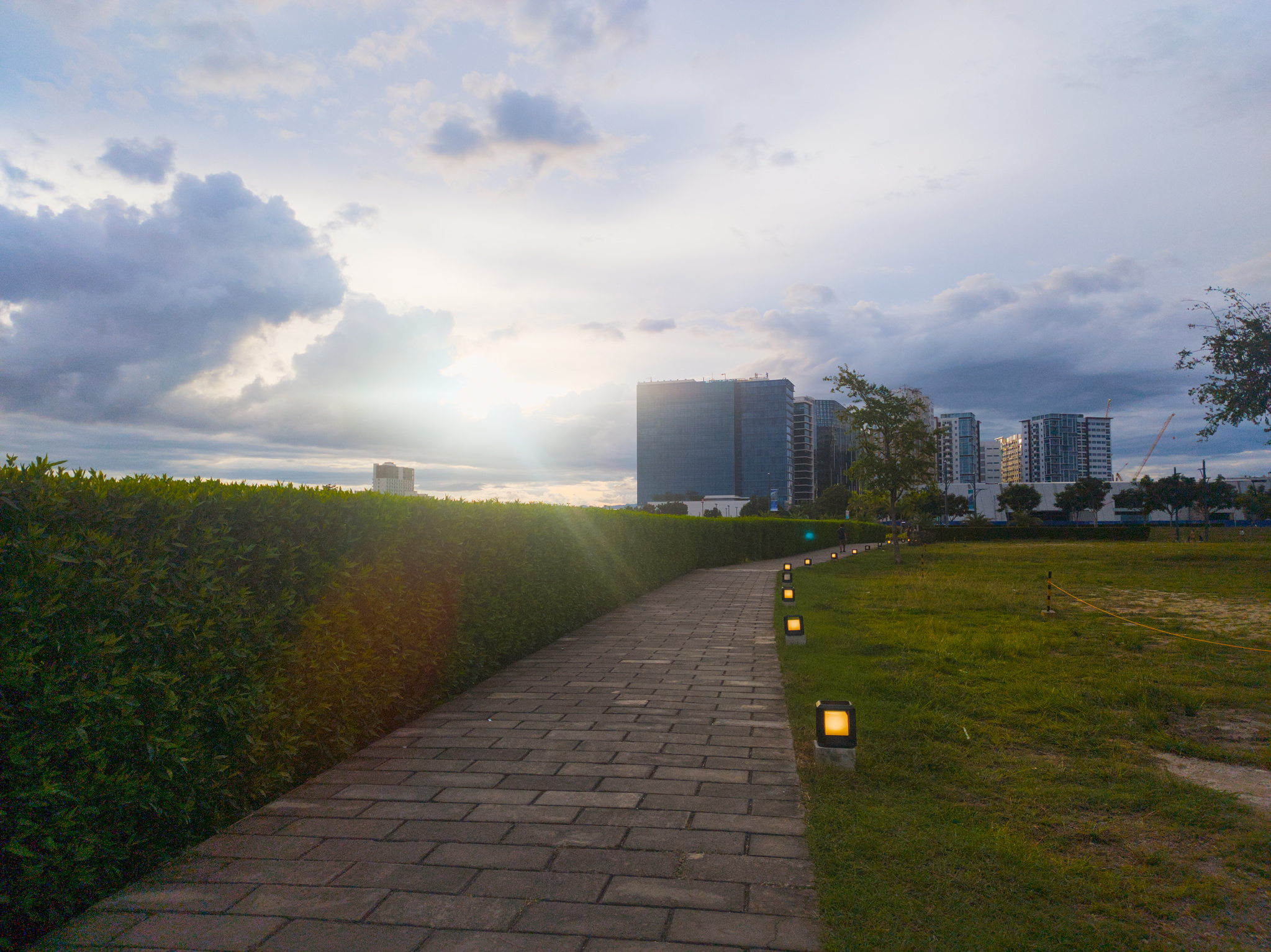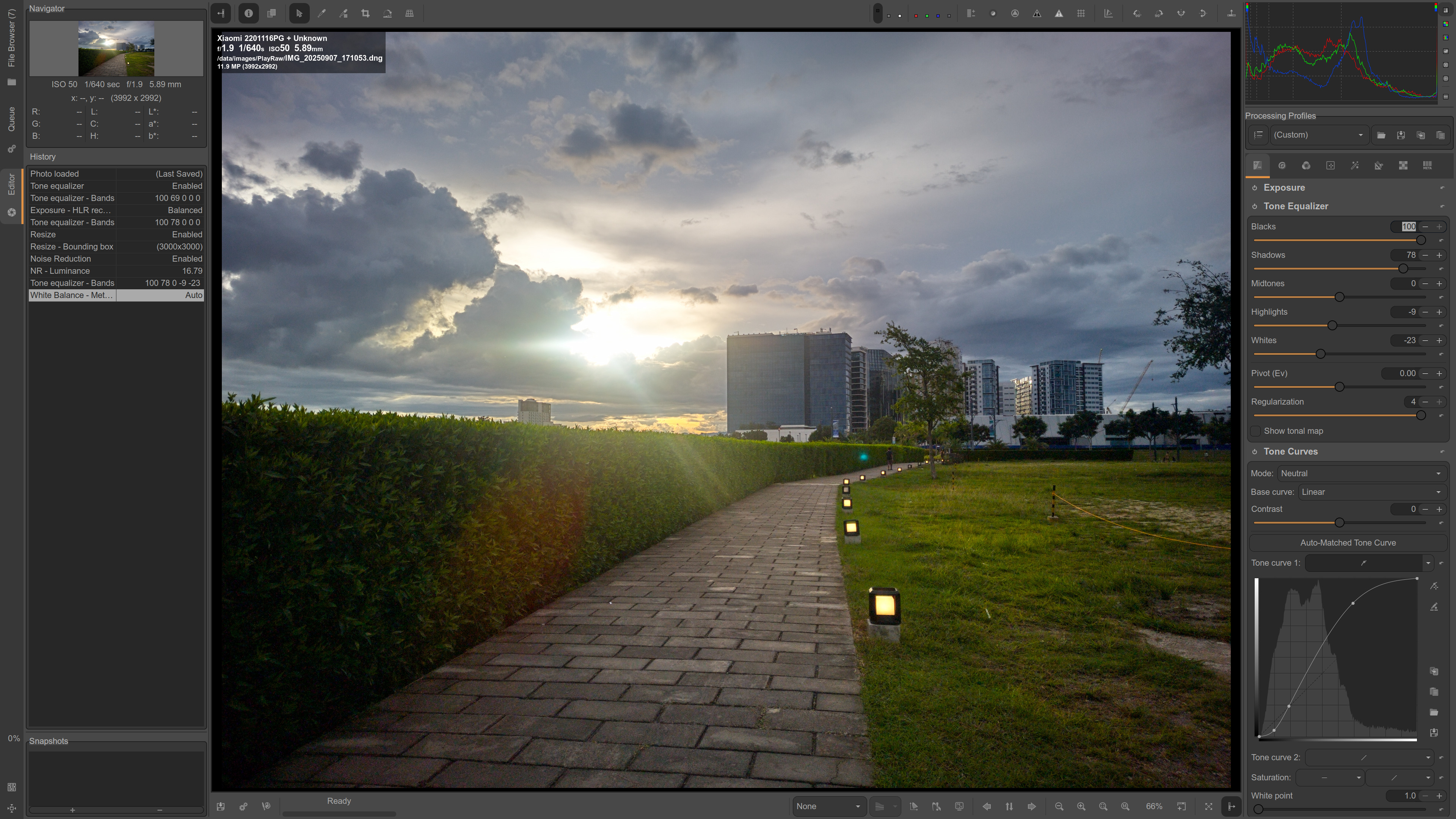 I think, with a bit more tinkering, it can do even better - for example, more dramatic clouds, better color preservation of the lights along the path, more structure of the pavement.