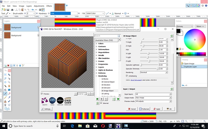where it is displayed : Plug-in G'MIC-Qt v.1.0.0.0, Author: null54, Copyright (c) 2018 Nicholas Hayes (aka null54).