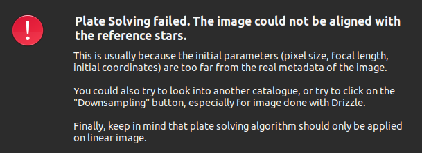 14:52:45: Plate Solving failed. The image could not be aligned with the reference stars.