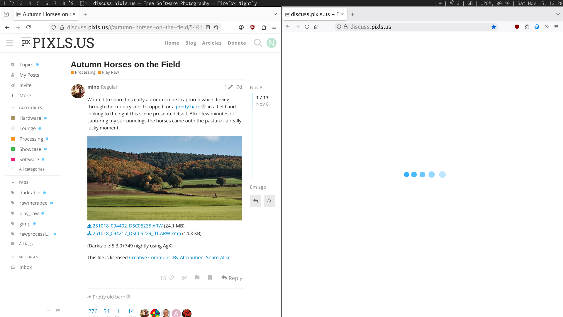 Looks like an issue with that hardware/config. Does pixls run anything that might block me if say my Firefox (beta) was buggy and acted spammy in some way?