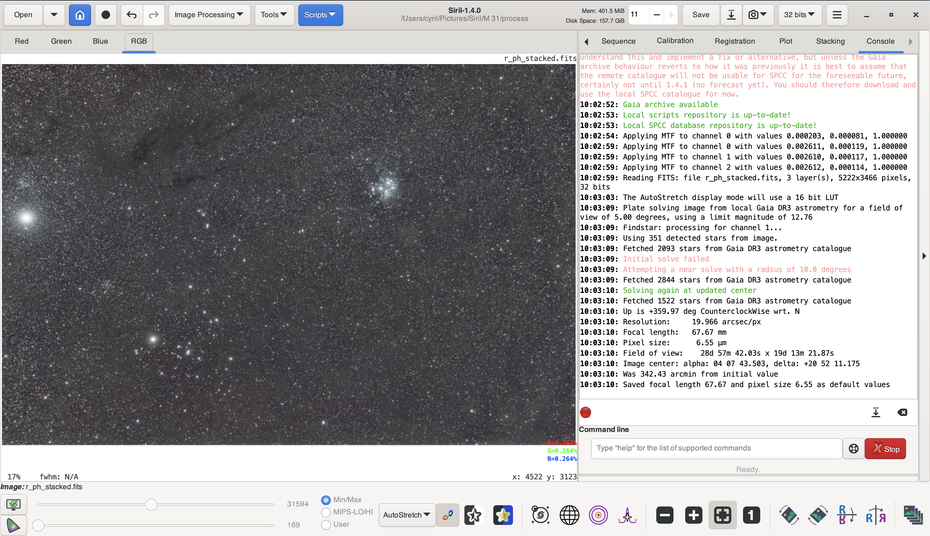 I have a question/problem with plate solving in SIRIL (Version 15, Dec 5th). My image Pleiades/Hyades