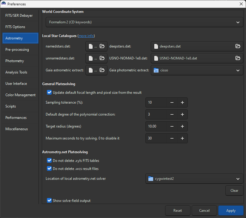 If I invoke astronometry (locally) with a guess it solves within seconds, and it’s more like a minute without a guess (but I give a range for my pixel scale). I could live with that, at least for the focal lengths I am interested in. Is there any way, or any chance siril could be opened up in the future, I can get plate solving working from siril without a location guess?