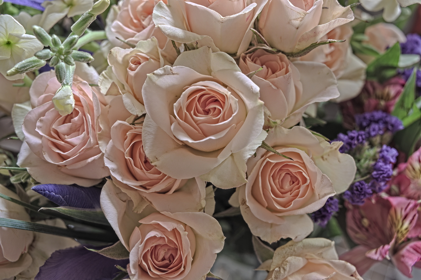 These roses aren’t especially “colorful”, at least in the gamut explosions we’ve discussed recently, but a light touch with pattern can be interesting. This exposure was from northeast light in the afternoon, heavy cloud cover, so the base-iso exposure is quite long. With the small dynamic range, I tried again my highlight-weighted matrix metering with +1EV; the green channel still is pushed up against saturation, but the others are well-below.