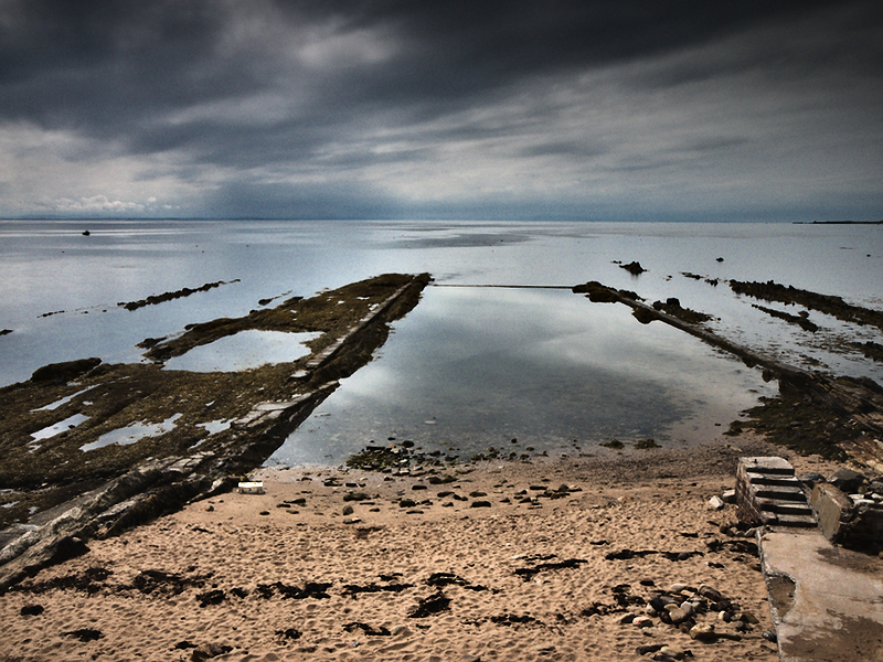 I was actually surprised at how much colour could be pulled out from the original raw file, which looks much better than my initial B&W conversion. Certainly I think the image is stronger as a colour image, than a B&W, as the eye can see the difference in colour between the sand, and the concrete walls and the rocks and algae.