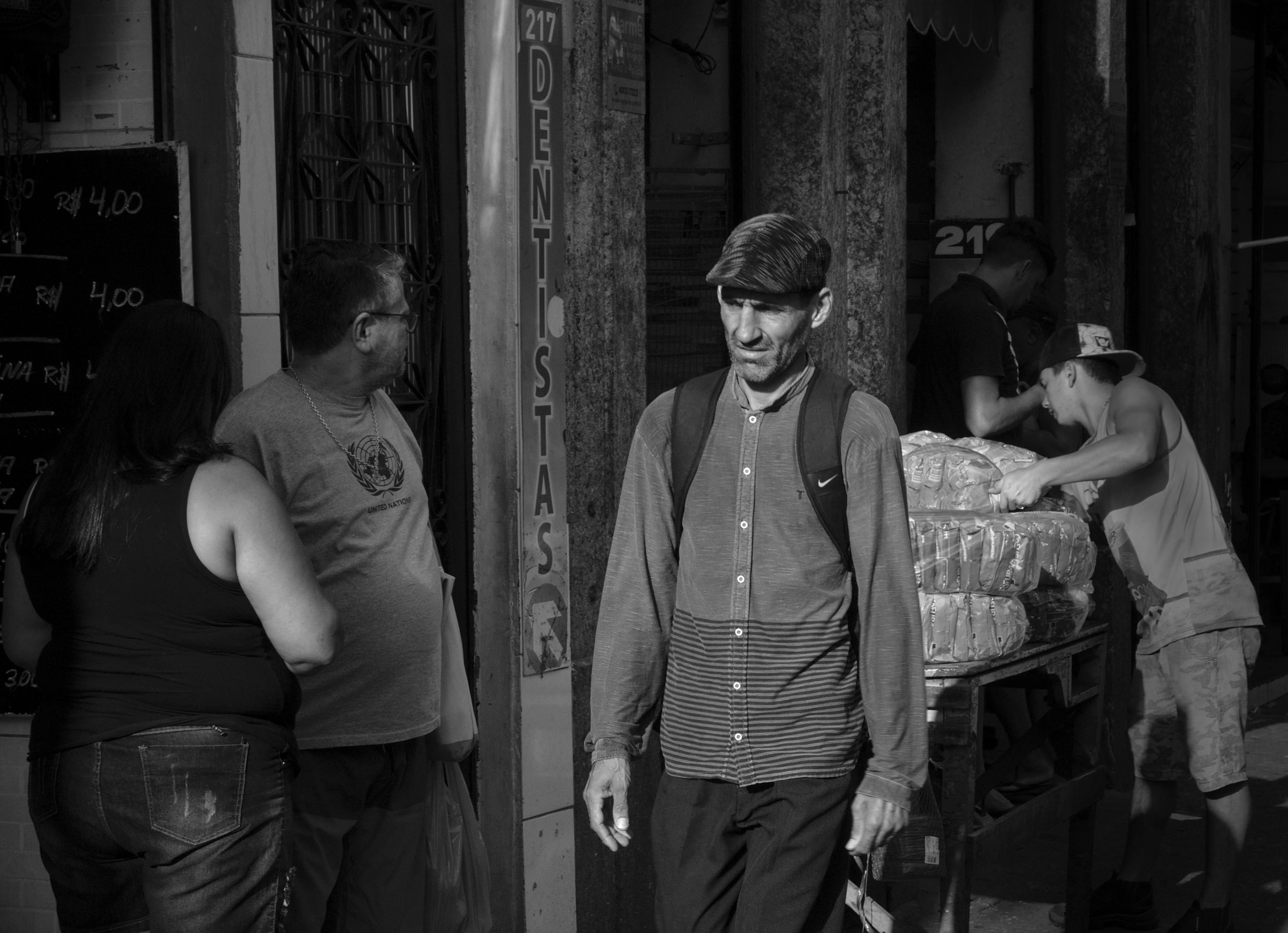 I have to go to the dentist tomorrow, so it seemed like a good time to have a bit of a dark mood and emphasize the guy with the pained expression walking past the dentist sign.