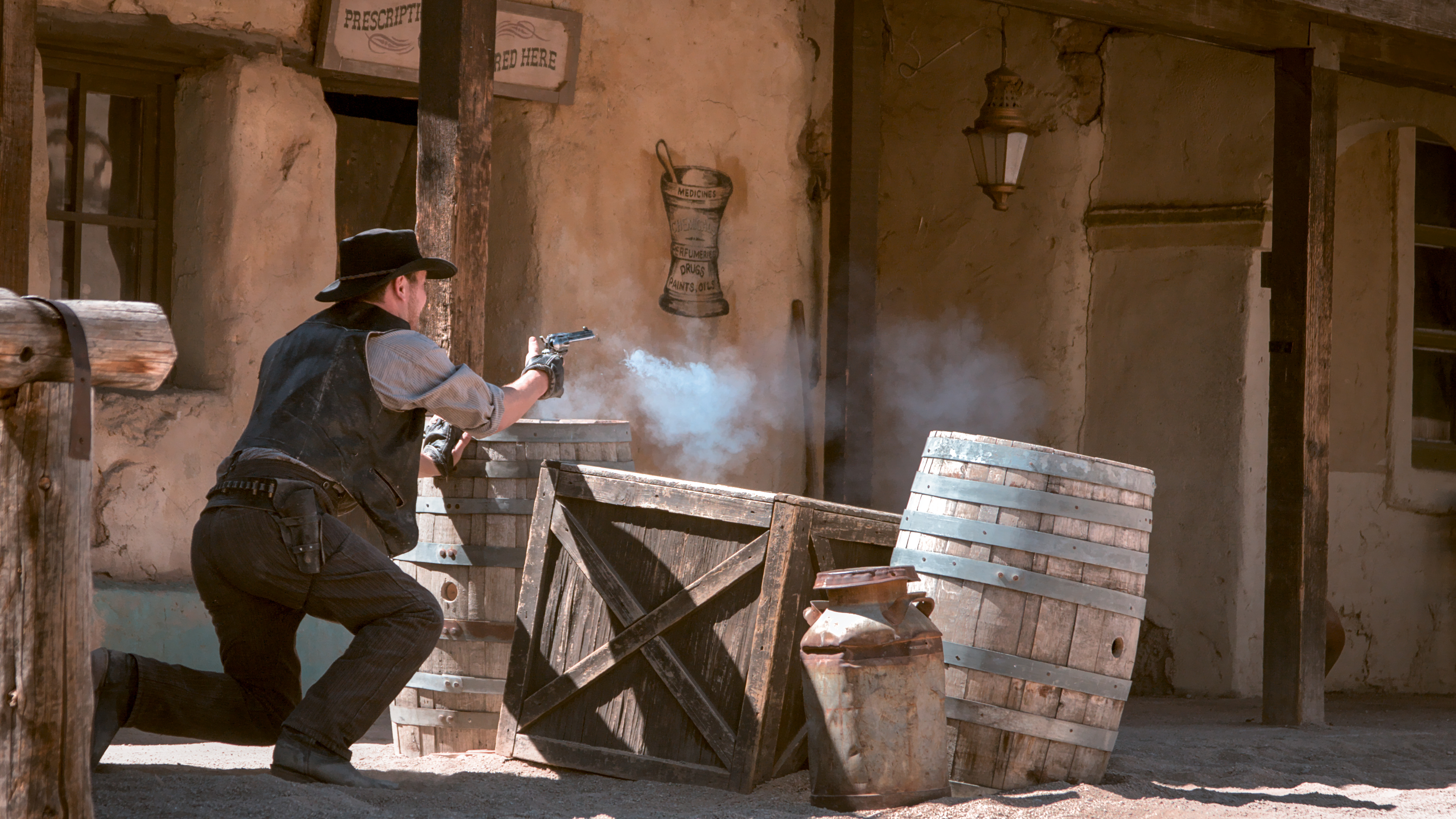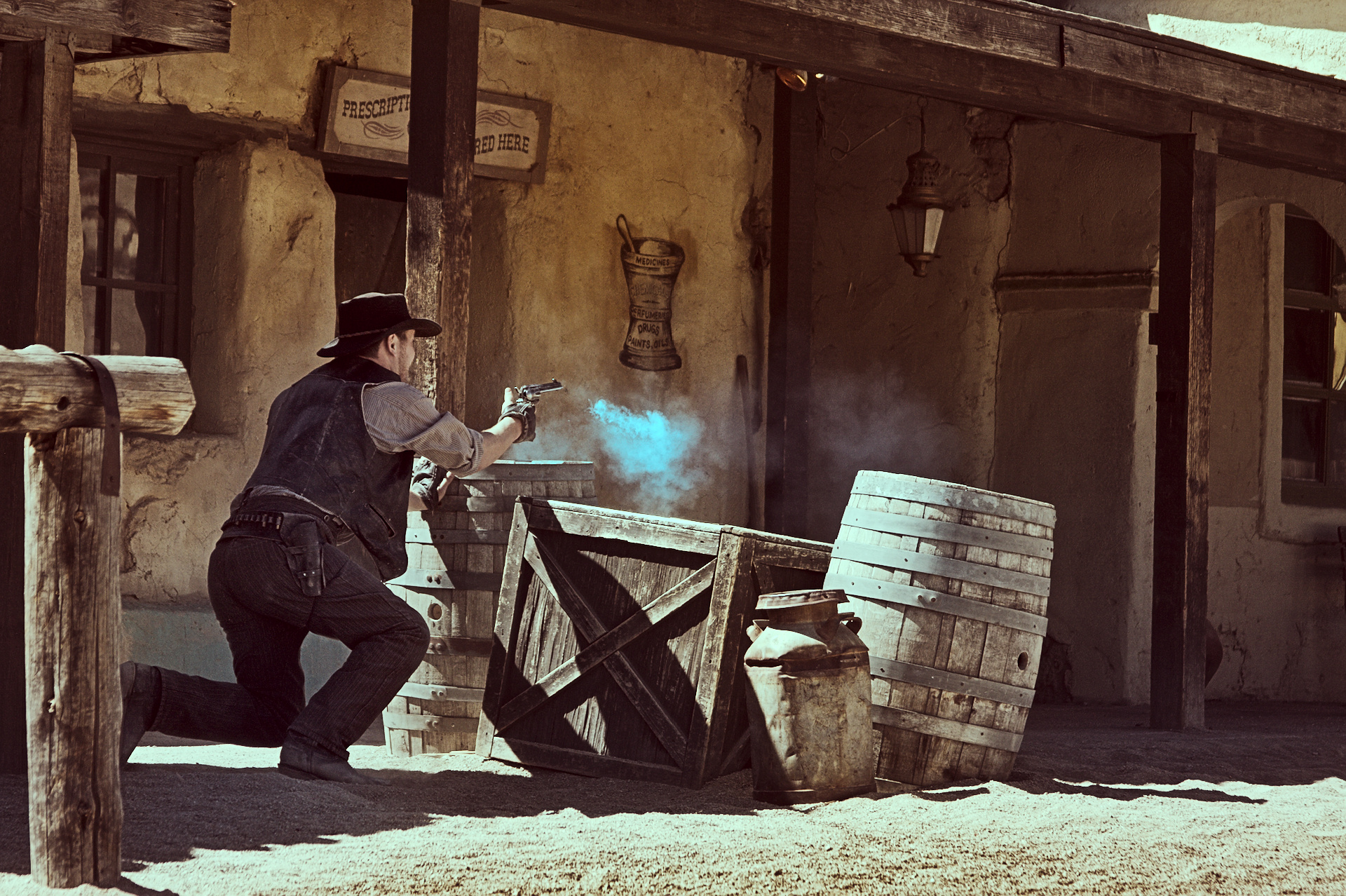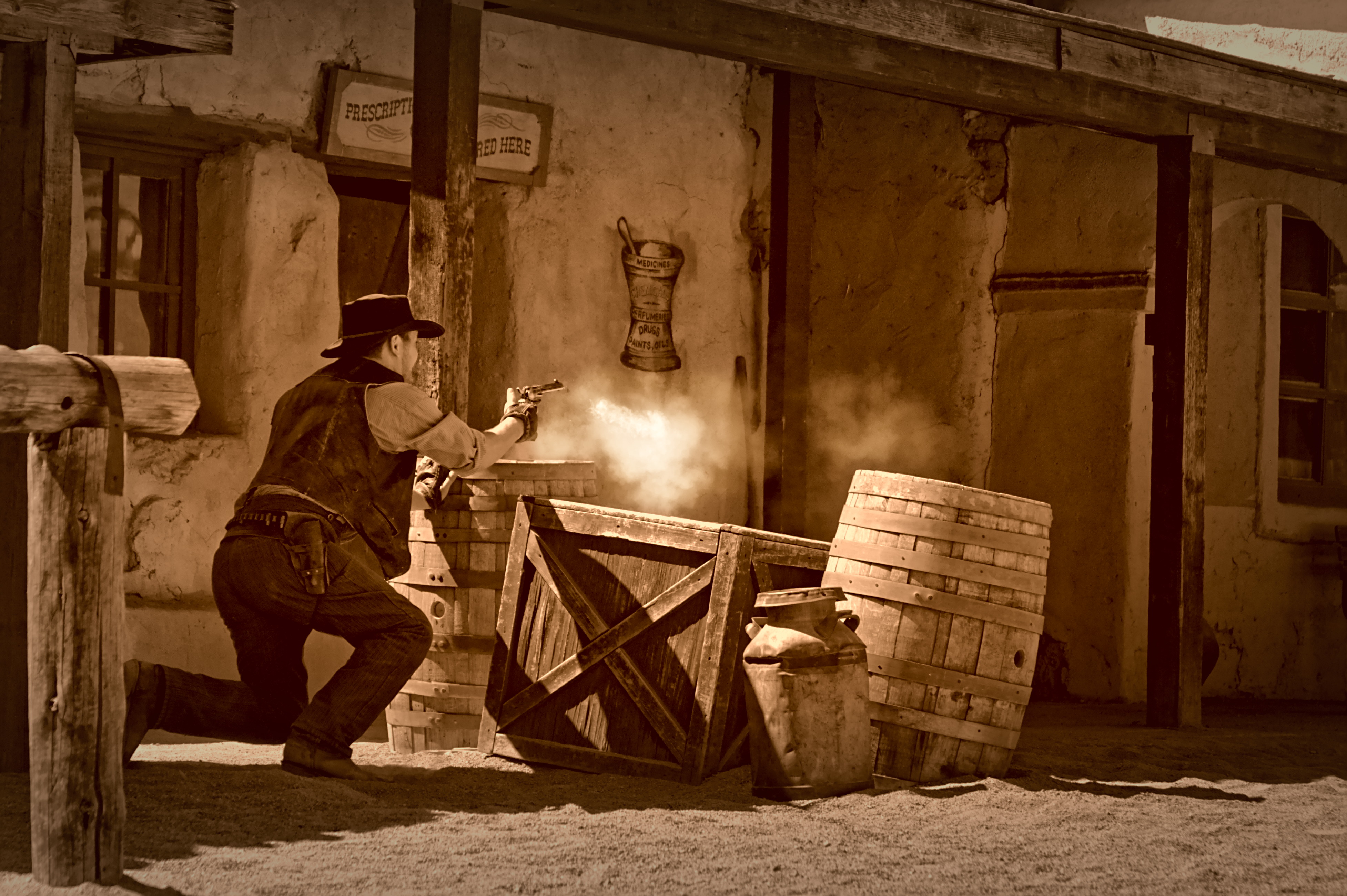I am so glad you have enjoyed working on my photos from my day at Old Tucson Studios in 2009. Thank you so much! Here is one more that I think has potential. I used darktable 2.6.2 and I think it could still be vastly improved but I tried to open up the light around the smoke. There is a time spoiler in this shot, too.
