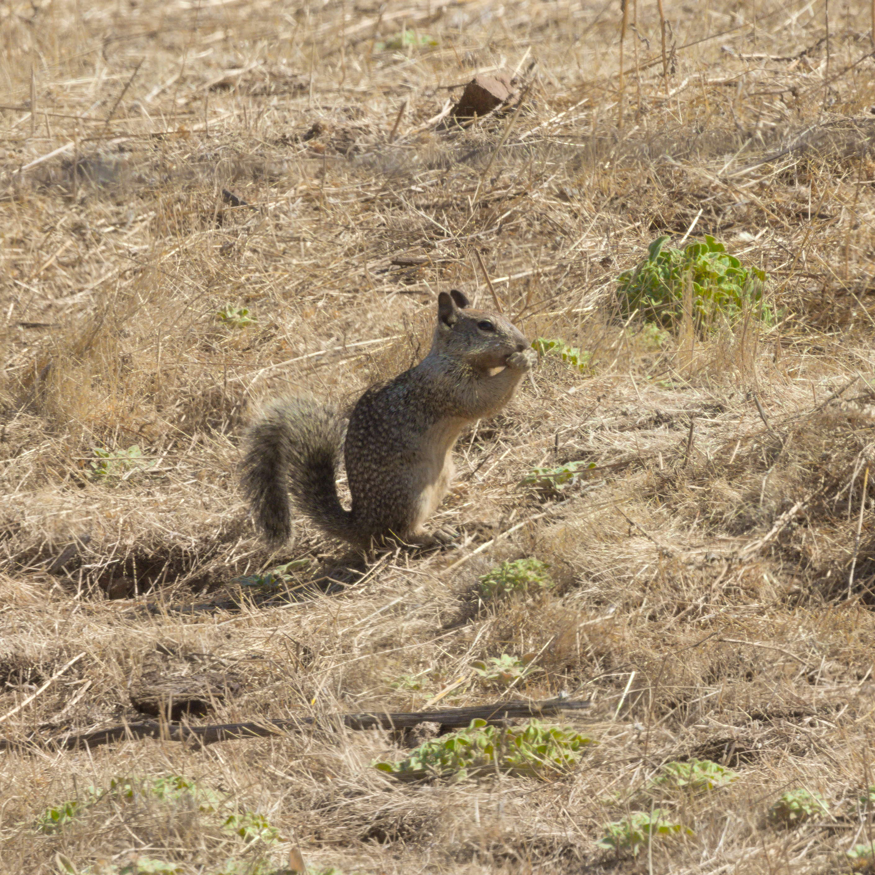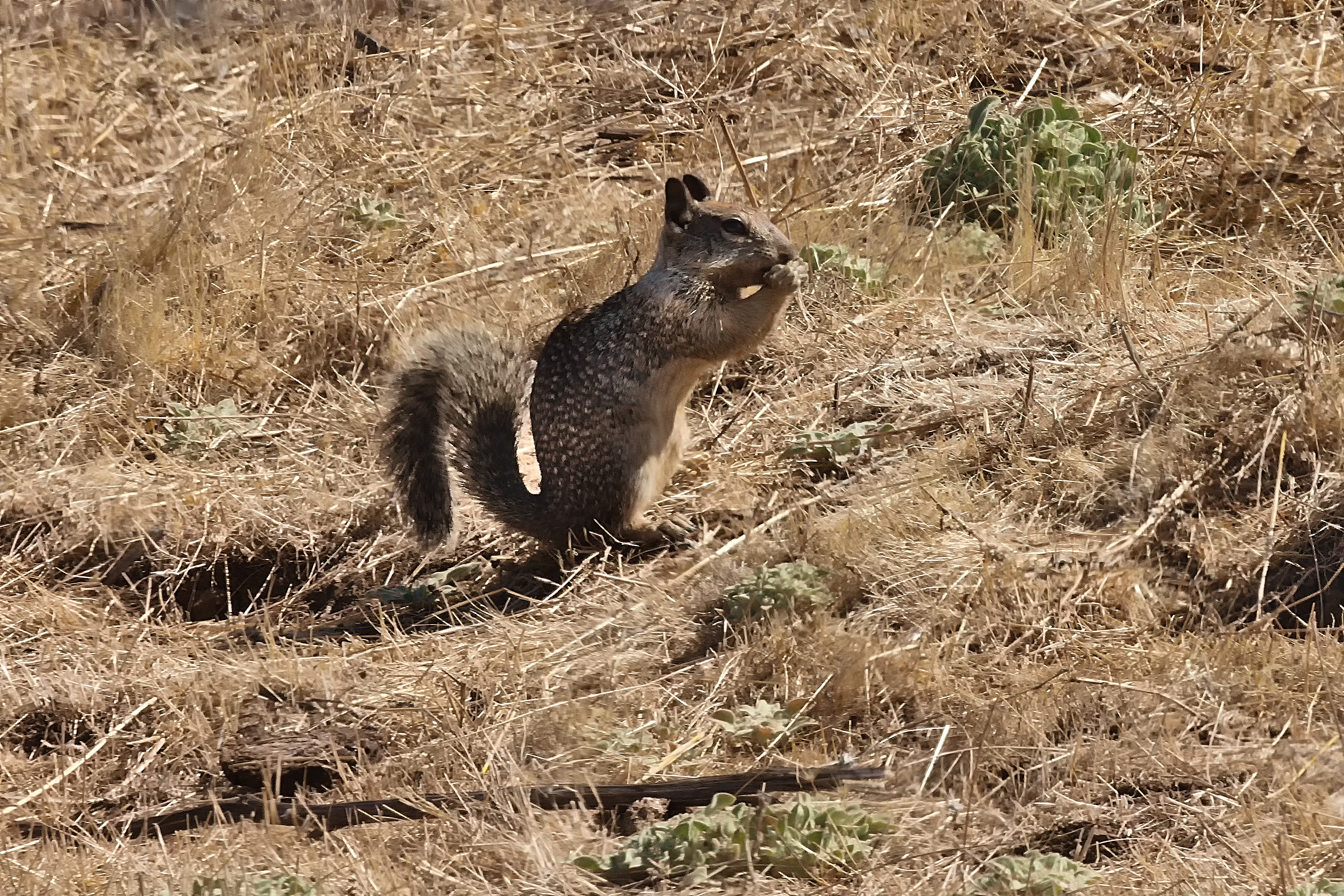 A common high-noon lunchtime scene on a California summer day: Hungry vultures watching squirrels keeping themselves hydrated with random field lettuces.