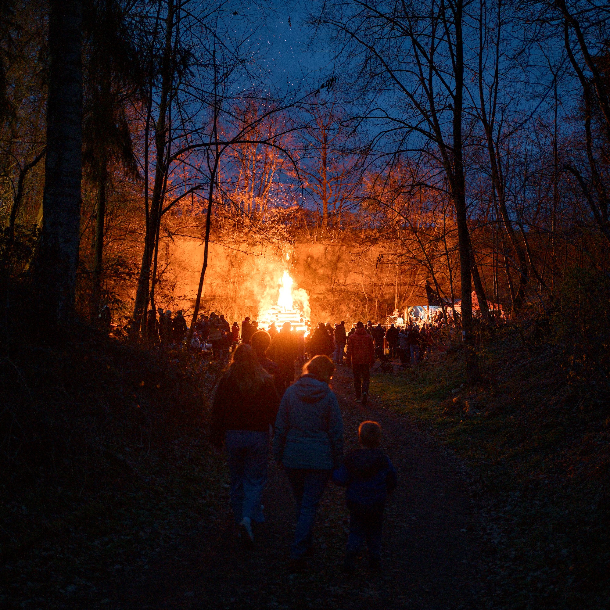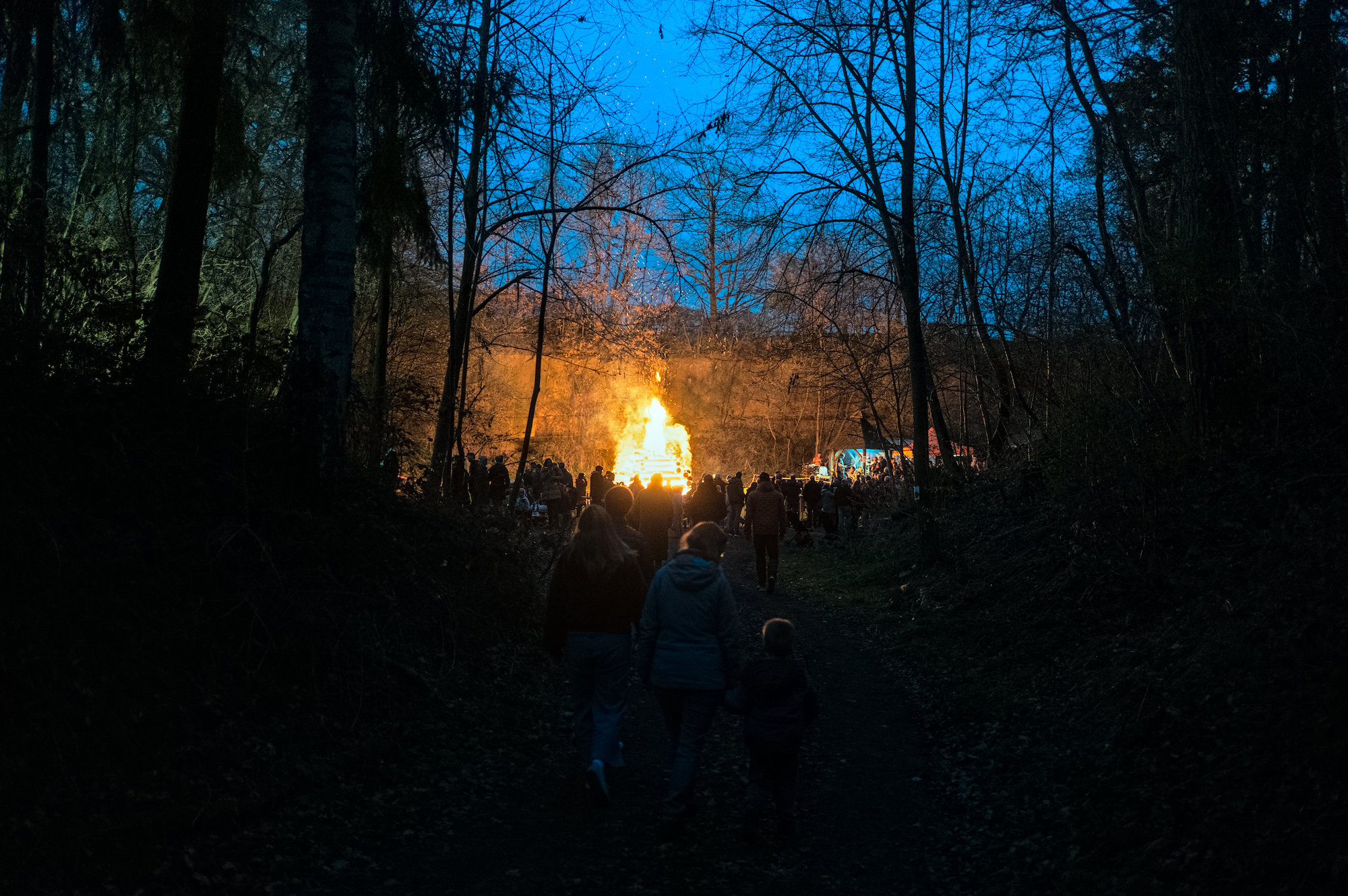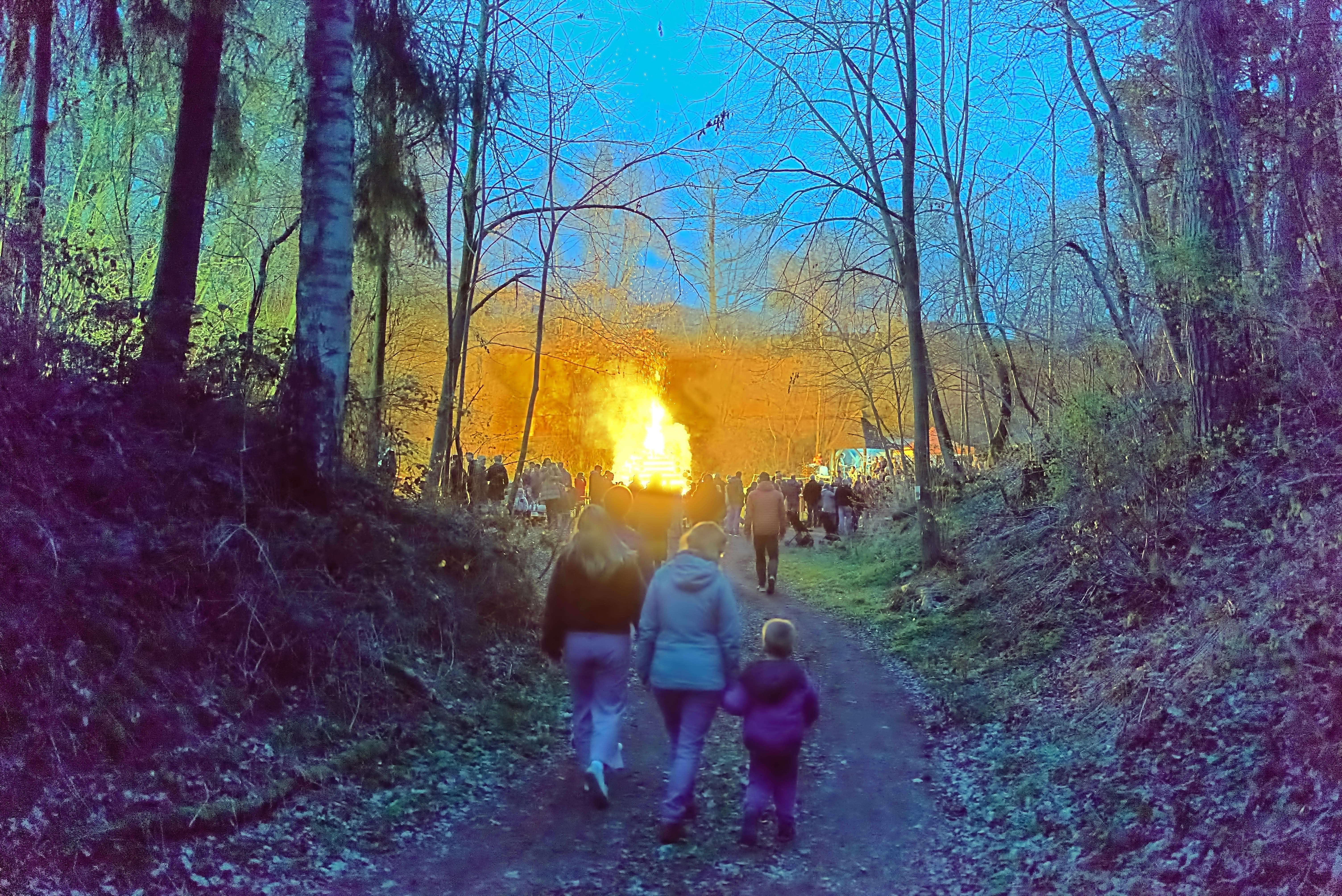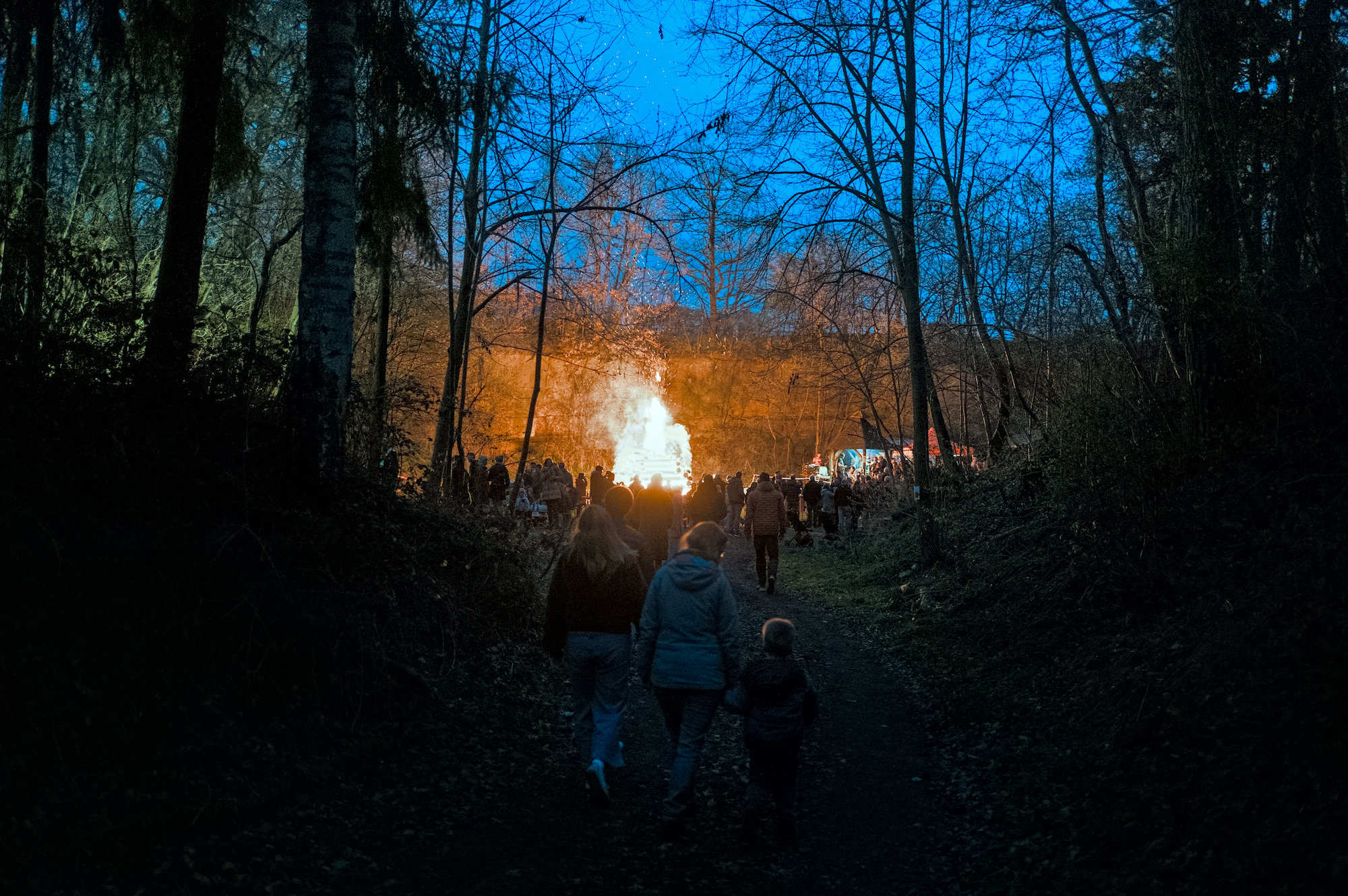On easter saturday we went to an old nearby quarry to the local easter fire. It was the first time my son saw such a big fire and was allowed to stay up late. Coming through the forest we could see the fires light from afar and the atmosphere was magical.