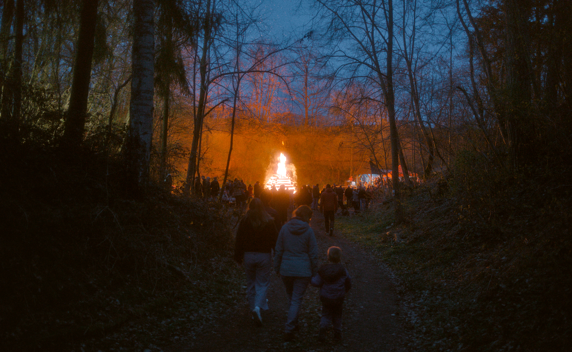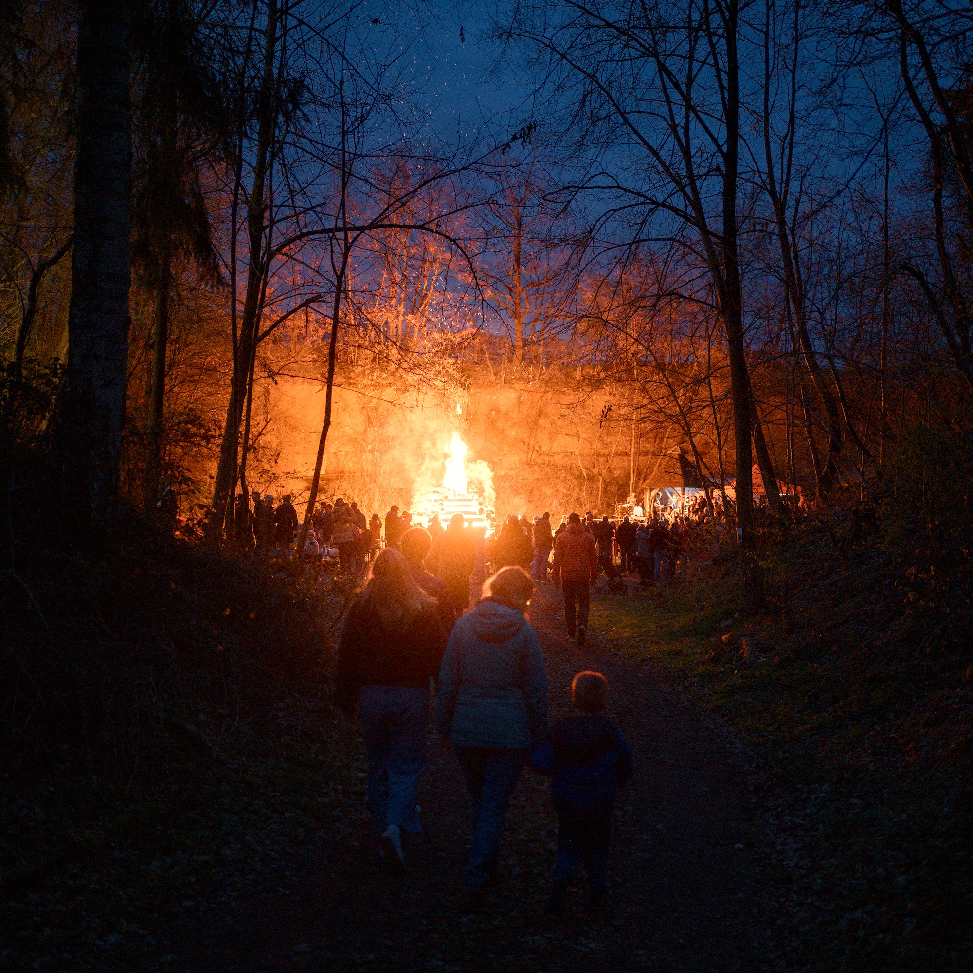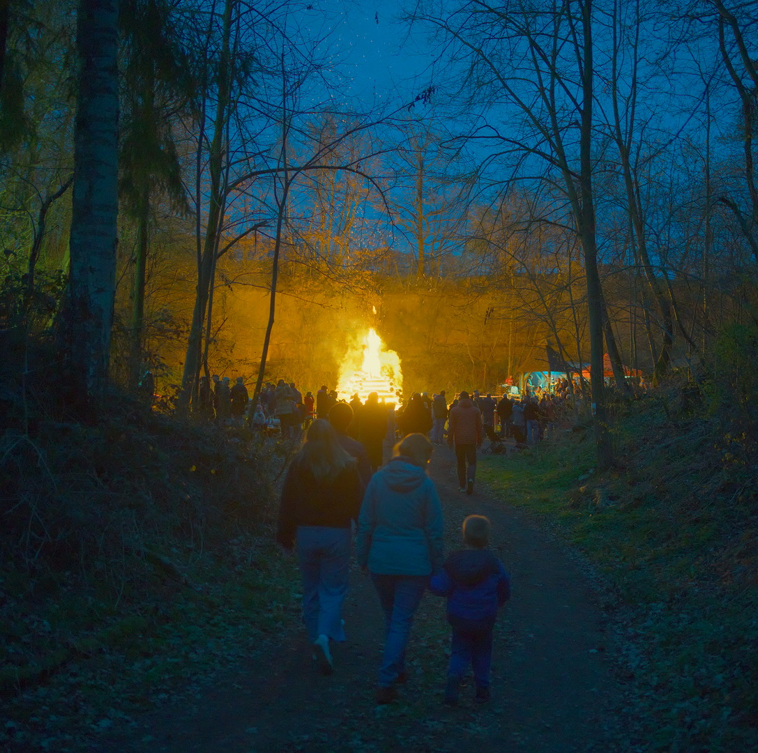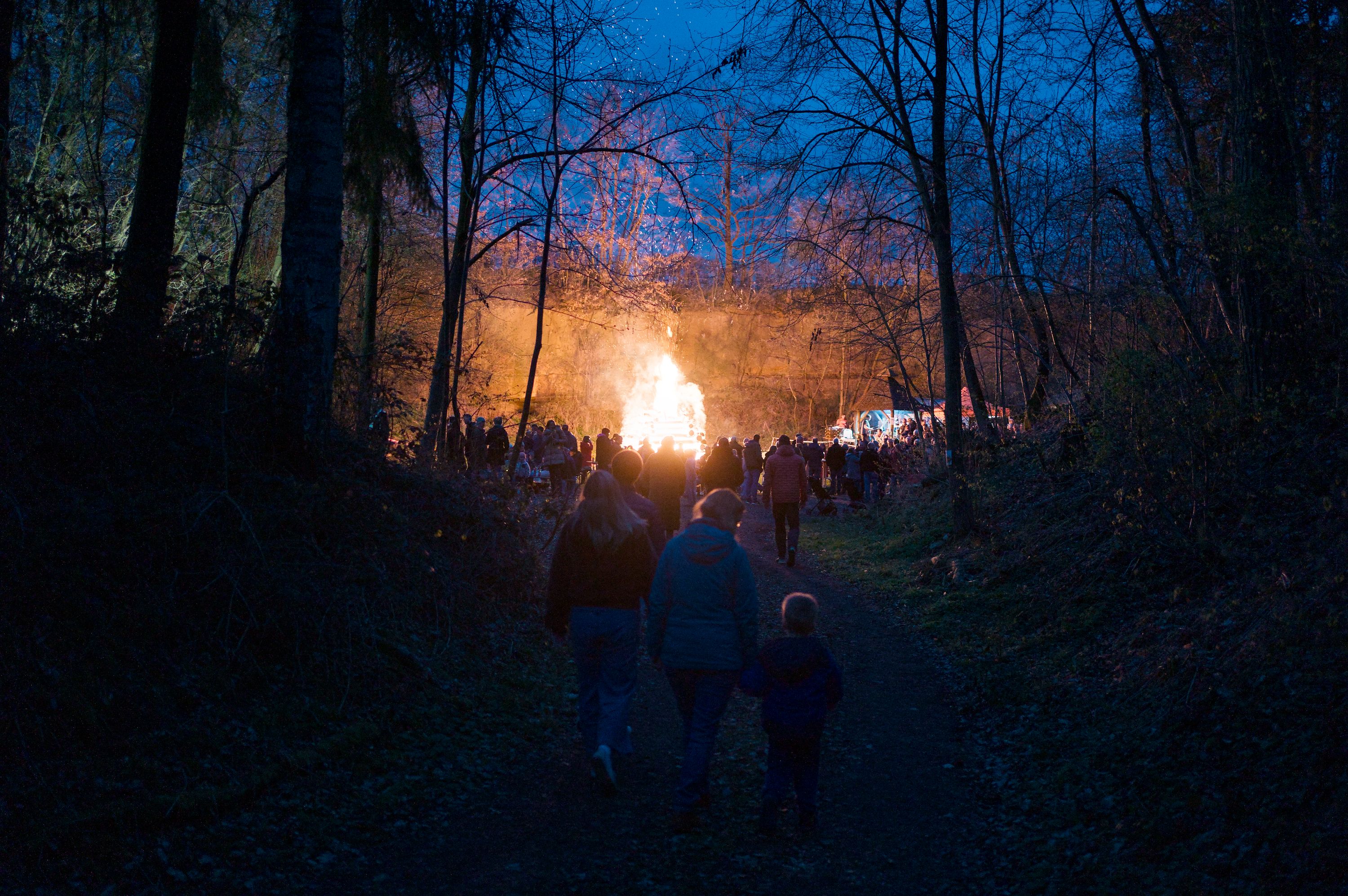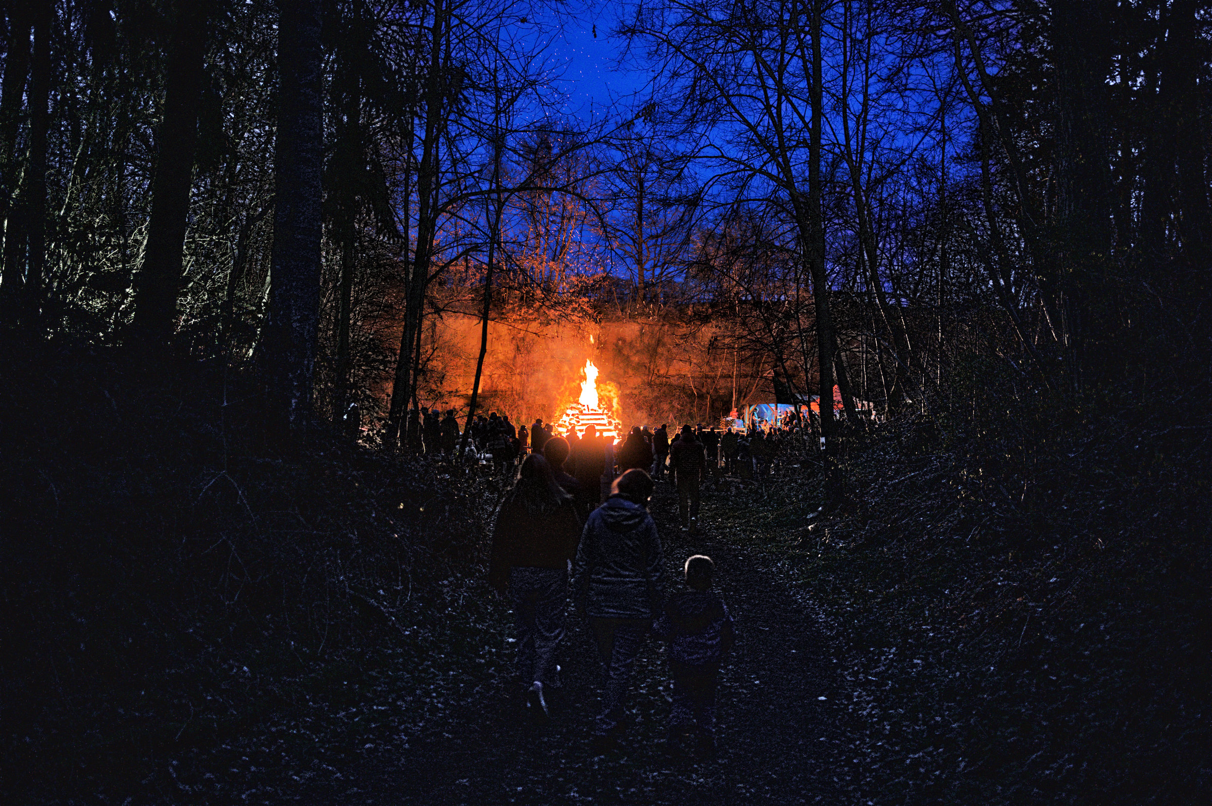 On easter saturday we went to an old nearby quarry to the local easter fire. It was the first time my son saw such a big fire and was allowed to stay up late. Coming through the forest we could see the fires light from afar and the atmosphere was magical.