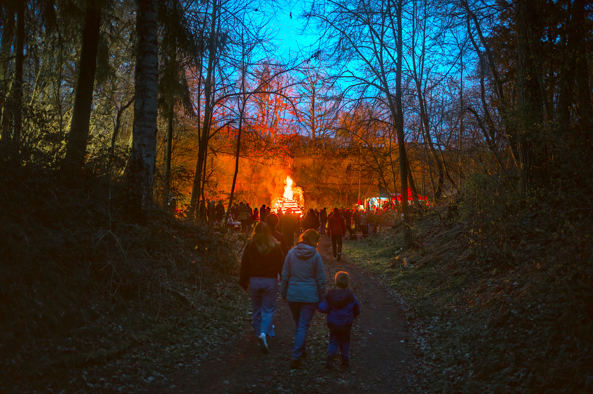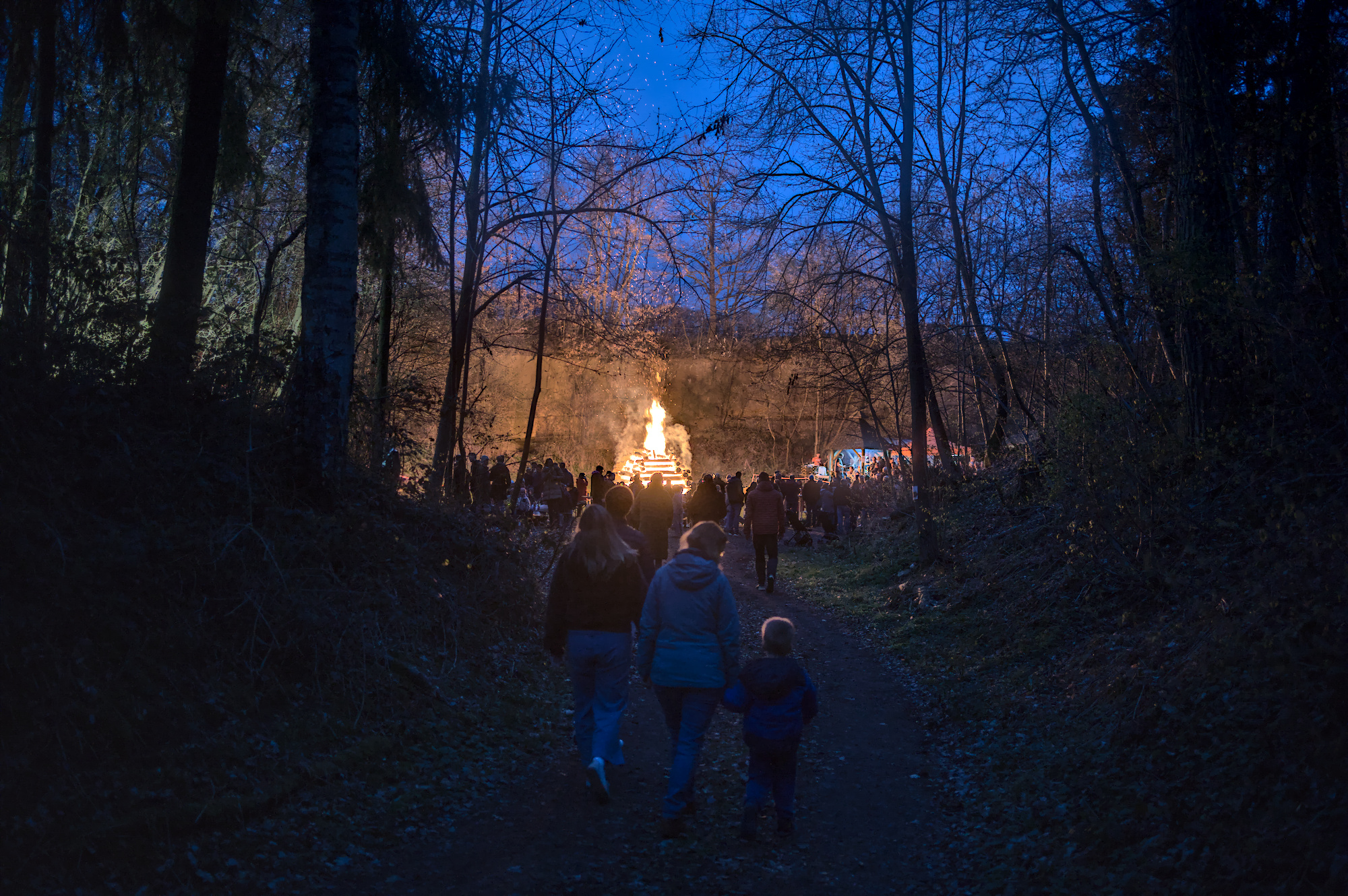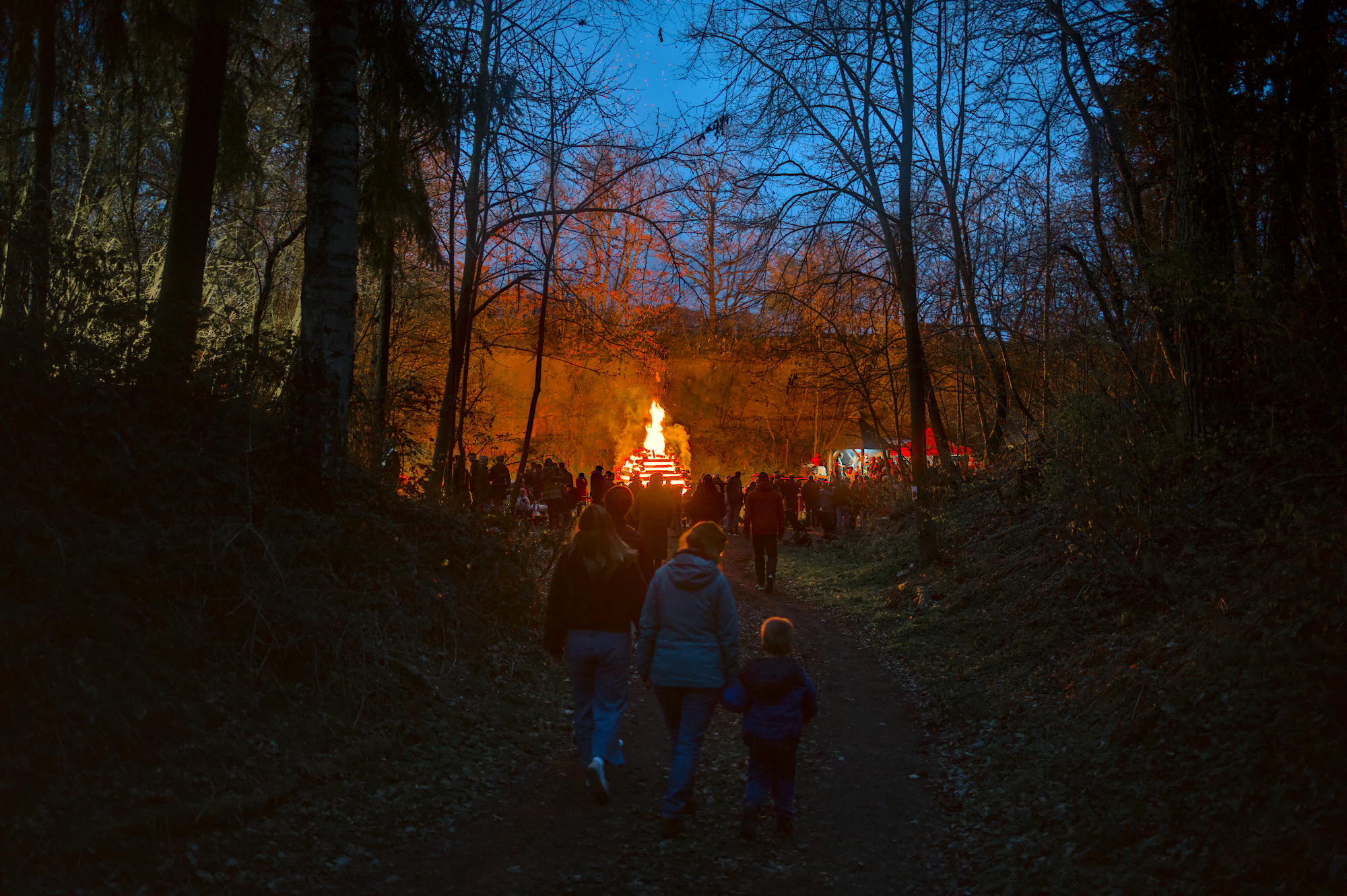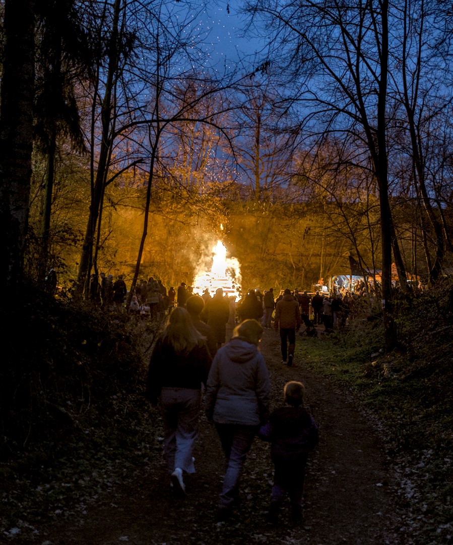 On easter saturday we went to an old nearby quarry to the local easter fire. It was the first time my son saw such a big fire and was allowed to stay up late. Coming through the forest we could see the fires light from afar and the atmosphere was magical.