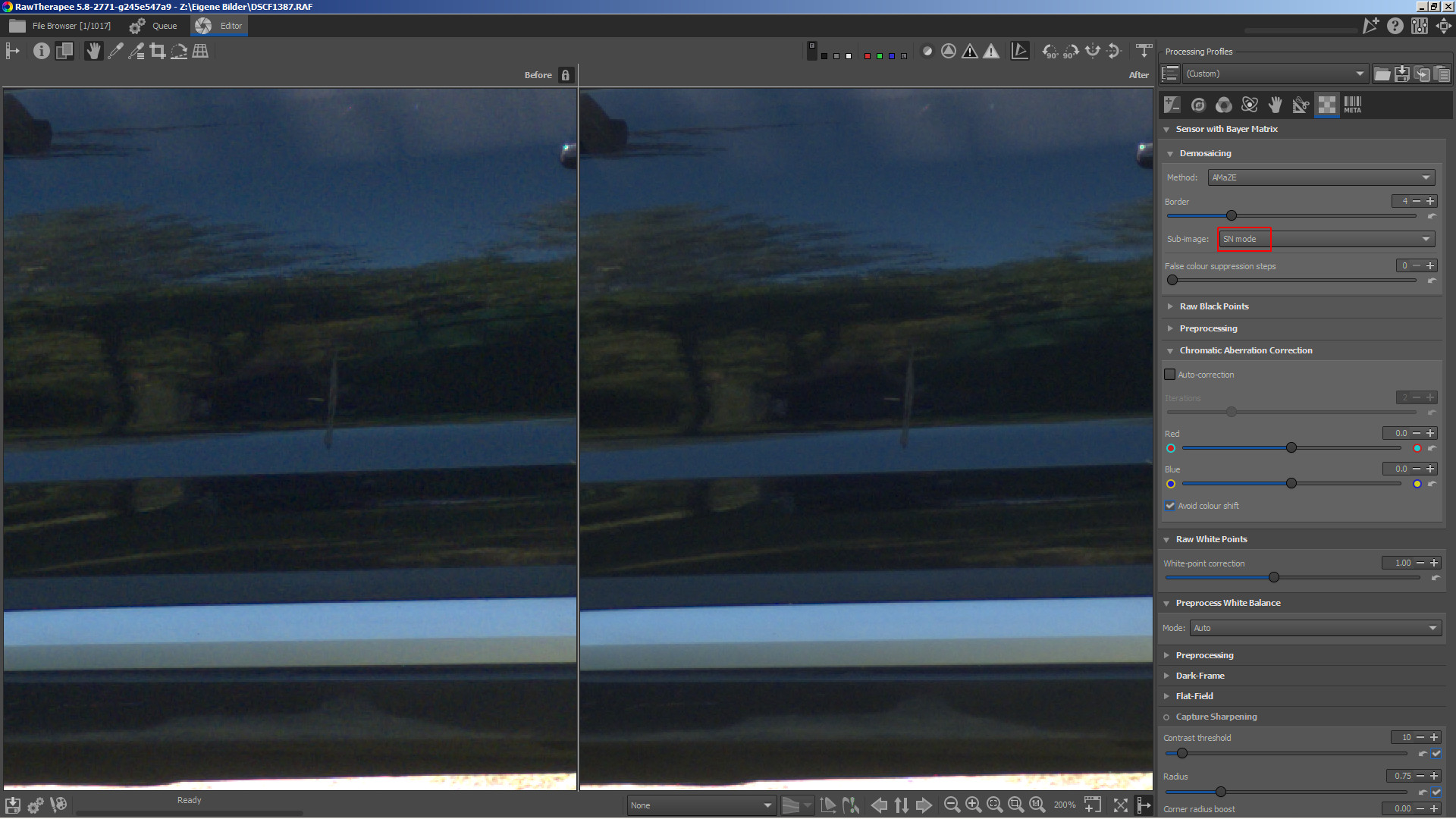 Left is only one frame, right is using two frames in SN mode