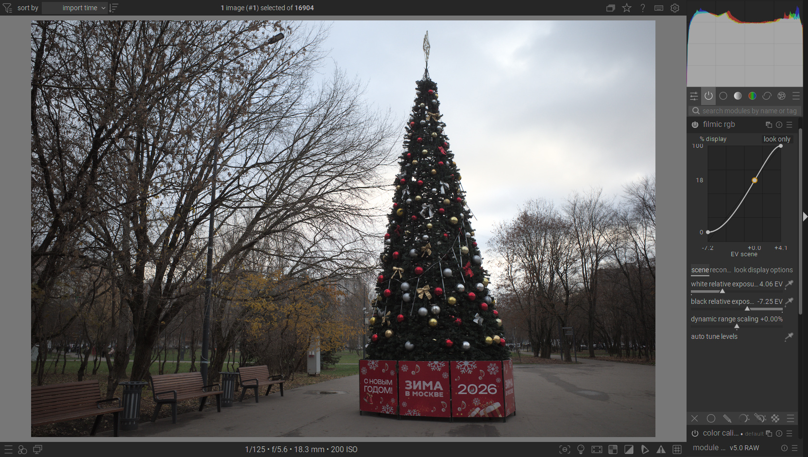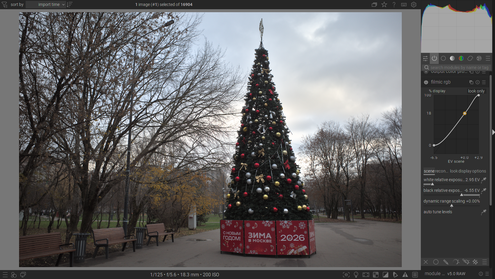 Now “filmic rgb” does a better job at the cost of a slight underexposure - it’s set to 2.8 in here. Yet still, the detail is nowhere near the non-tonemapped image.