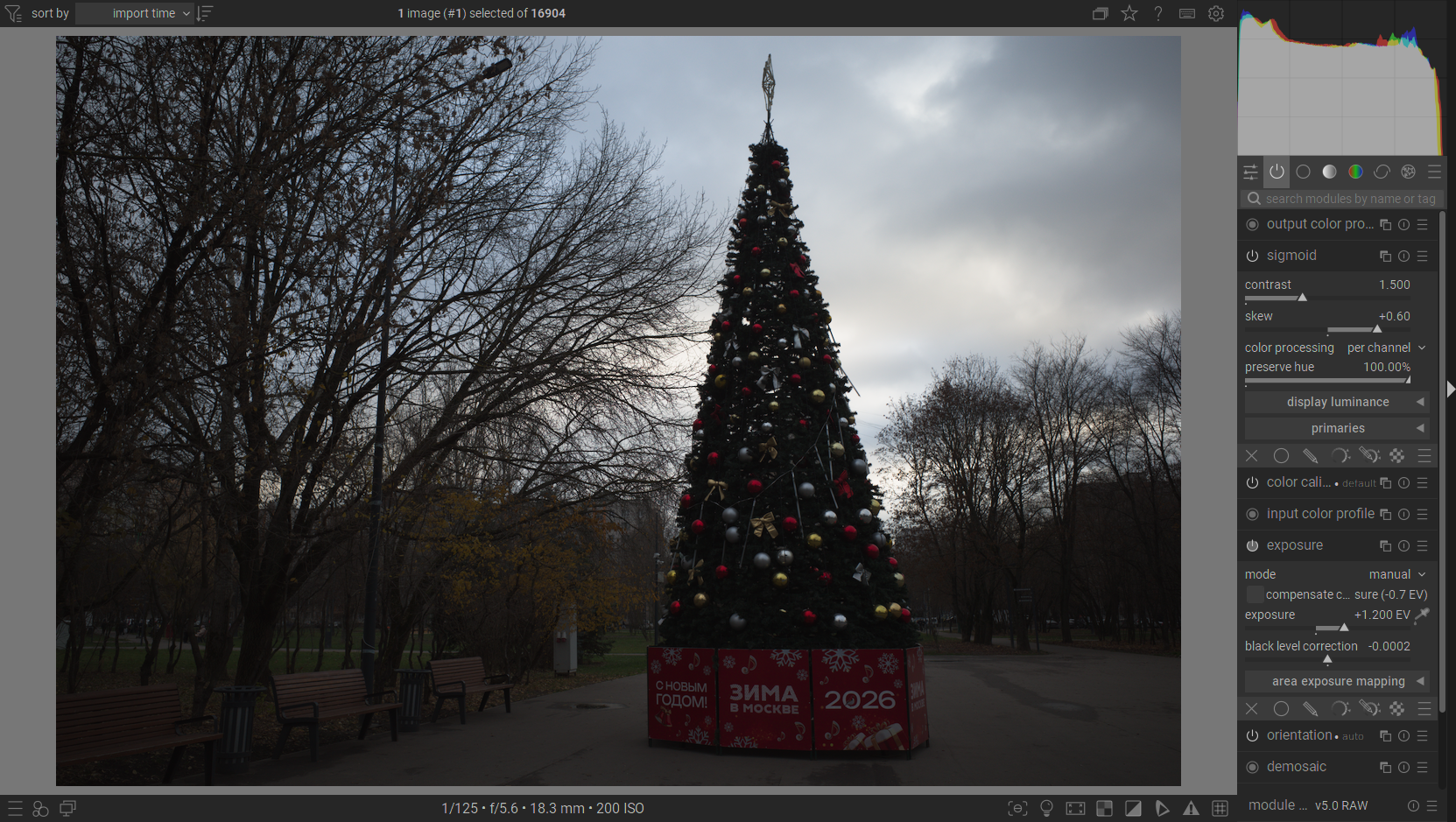 Look at the amount of detail and colour in the sky with the tone mappers disabled. All the modules are set to default.