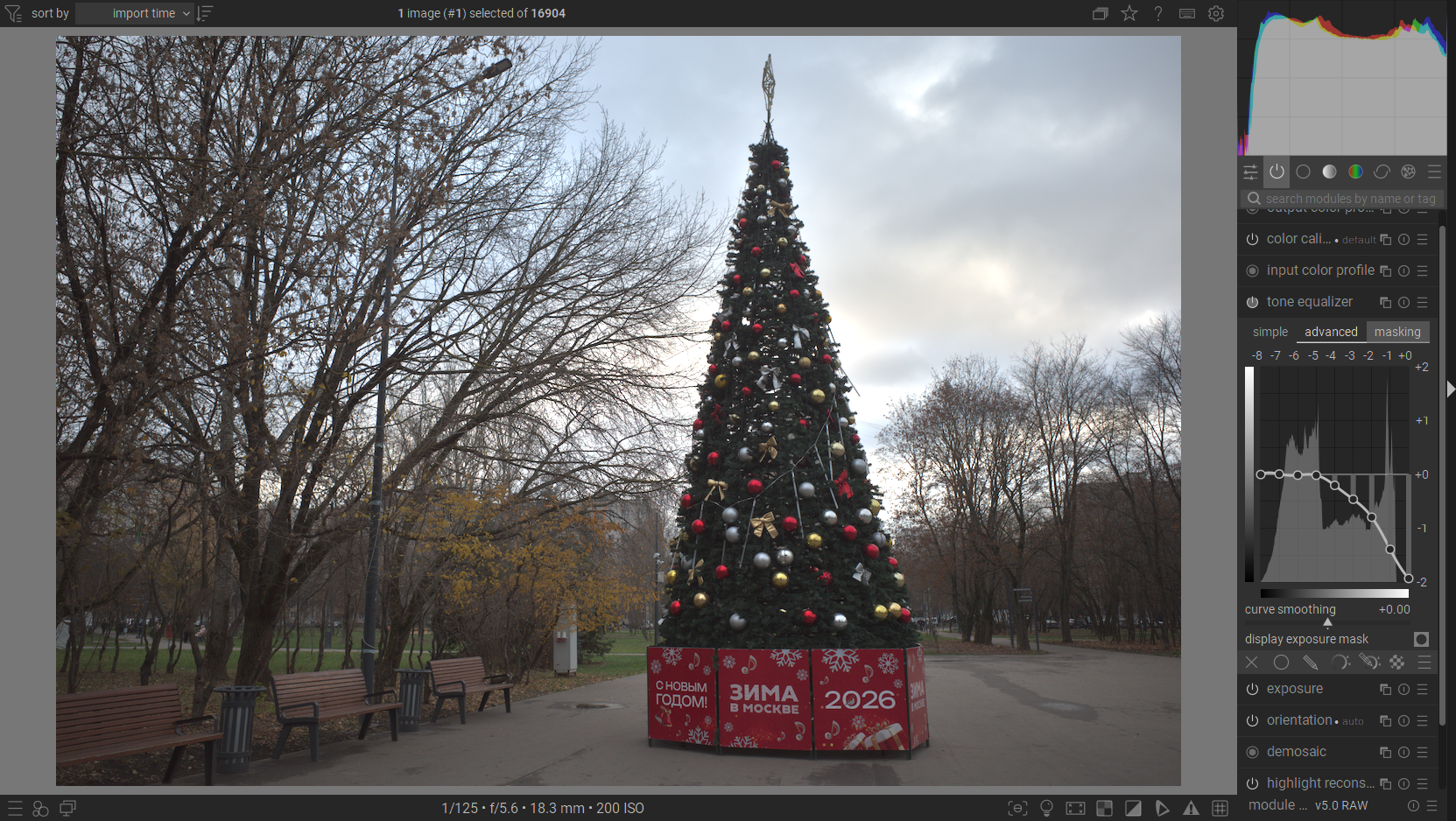 Here I’m back to the original exposure (3.1), now using “tone equalizer” without a tone mapper. The result looks very promising, but due to the nature of the applied effect (it’s done with clever masking and so on), I need to introduce this shoulder all the way from upper-midtones to achieve a natural looking effect. This compromises on midtone contrast.