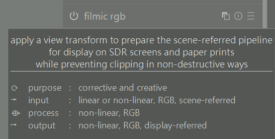 So basically the tonemappers in DT are generally the transition point to standard display referred space and then modules designed for that space follow after and their controls can act on the data now in that space…