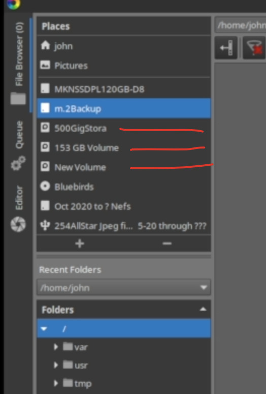 When I open up RT 2.9 the file browser does not seem to have the ability to access any of my drives. In RT 2.8 when I look in my Folders I see a Media Folder which houses all of my Drives. In 2.9 it does not even show that the Media folder exists.