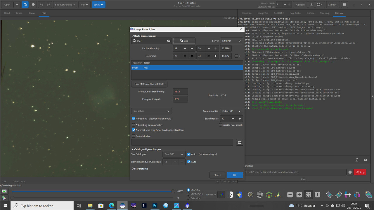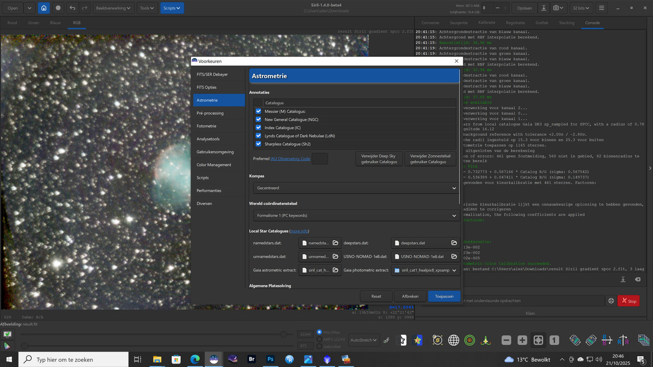 He’s downloaded the gaia astrometry catalog via the python script, the script unzips and installs it. That’s what we see in the Preferences tab. In any case, whether or not the catalogs are local, using a wrong pixel size (or focal length or both) won’t enable to platesolve the image.
