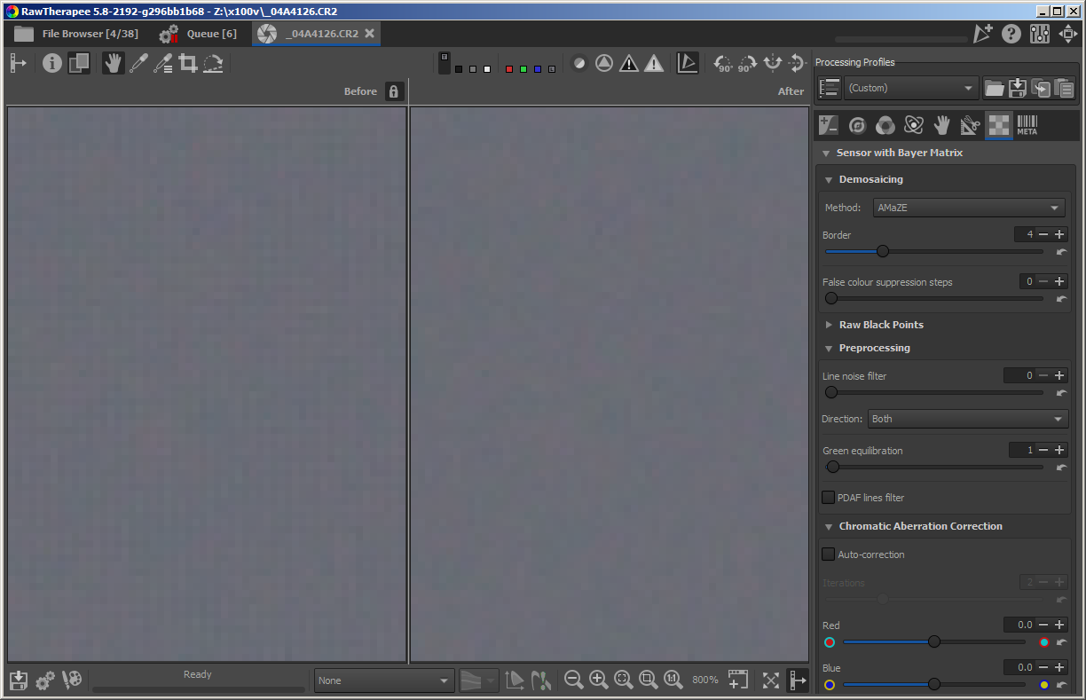 Have a look at the screnshot. You can clearly see the typical pattern of two different greens on the left. On the right I set Green equilibration to 1 to remove that pattern.