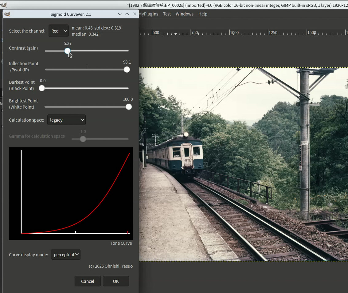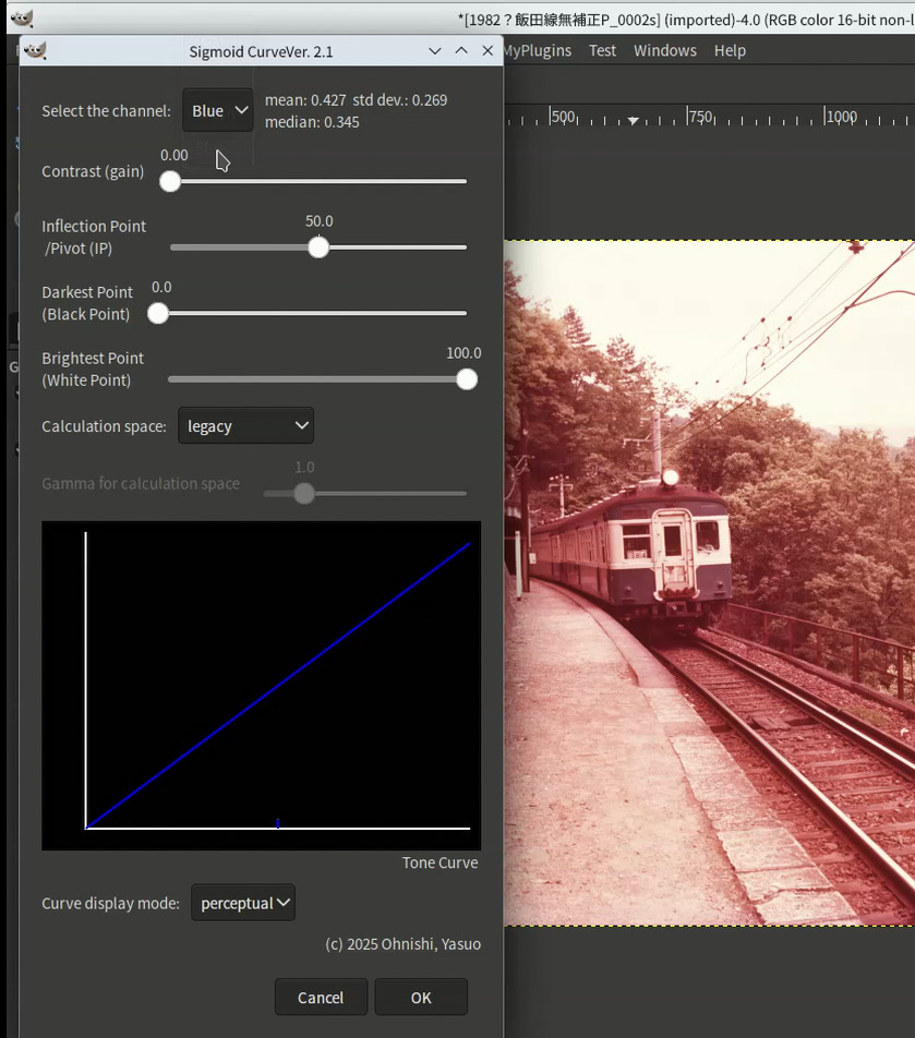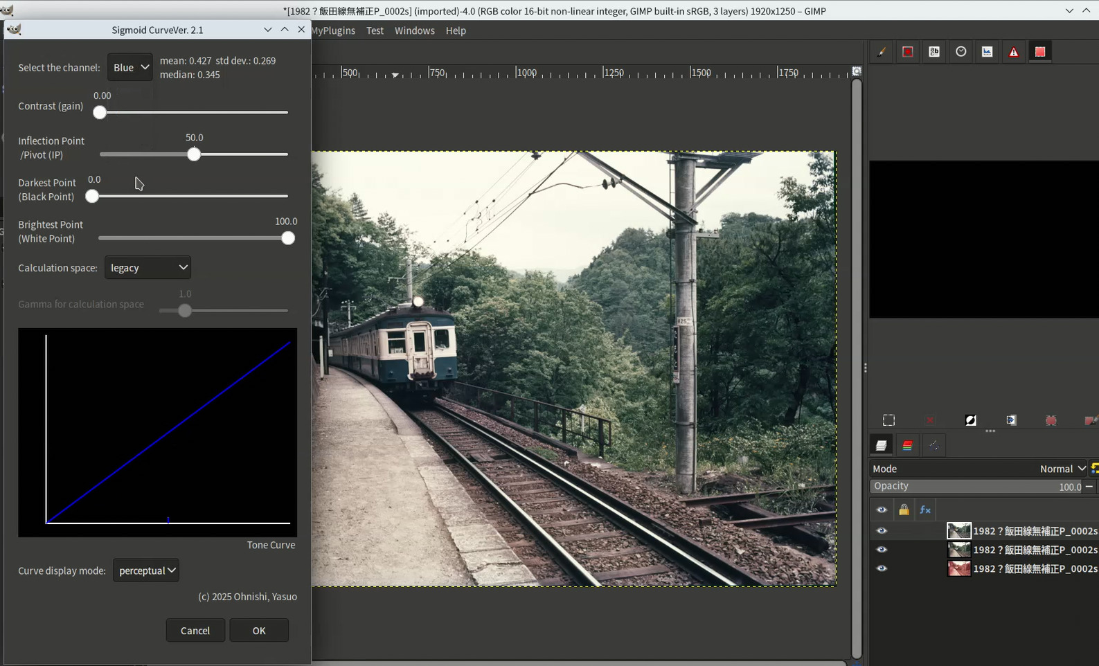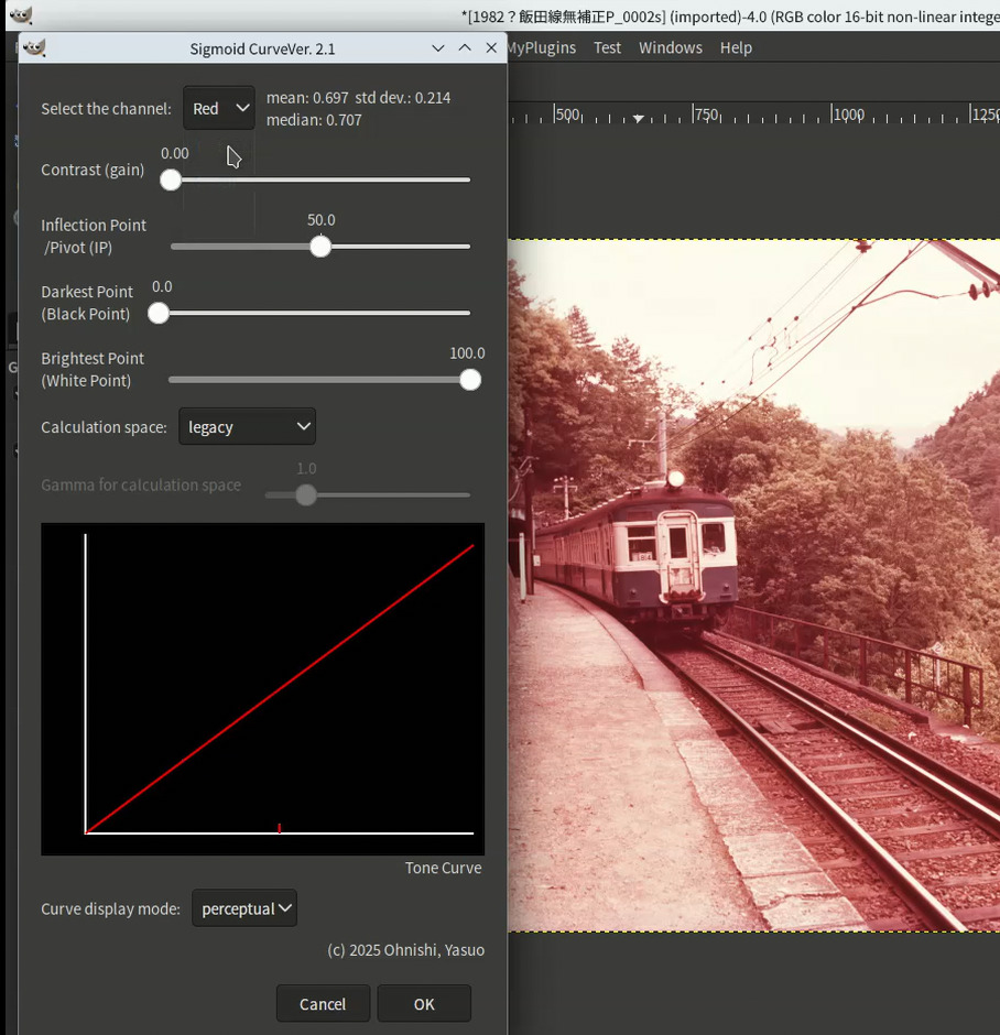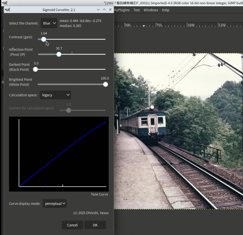 I made another new Python plug-in for GIMP3. This plug-in apply Sigmoid curve to the selected layer parametrically. You can download it from below link.