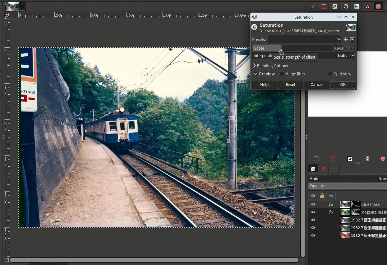 After once complete the editing process and correct the R channel, you run this plug-in again to correct the B channel level. In this turn, you set the IP under 50, but not 0, because it seems that in highlight it is needed to raise the blue lever but in shadow it is not needed to raise it.