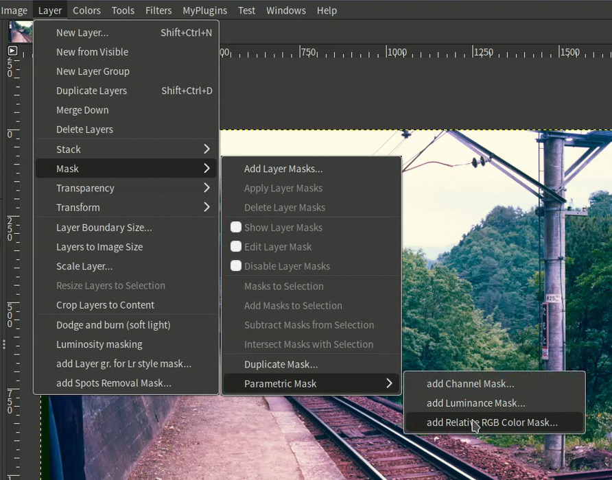 In the result image it seems that concrete parts is too bluish, so to diminish the blue cast in those parts, you make blue mask with he relative RGB color mask maker plug-in and edit the mask to cover the concrete parts.