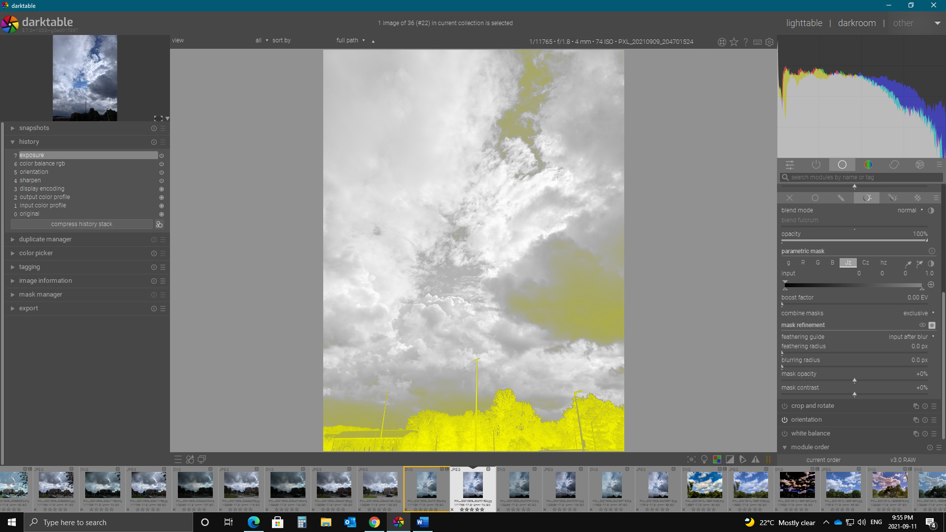 @Matt_Maguire@paperdigits Thanks for your comments…it still amazed me the dramatically different mask that you would get by setting the sliders at the same relative positions in each channel…they are completely different…at least on the image of some clouds I shot today…In fact it was like they were the inverse of each other??
