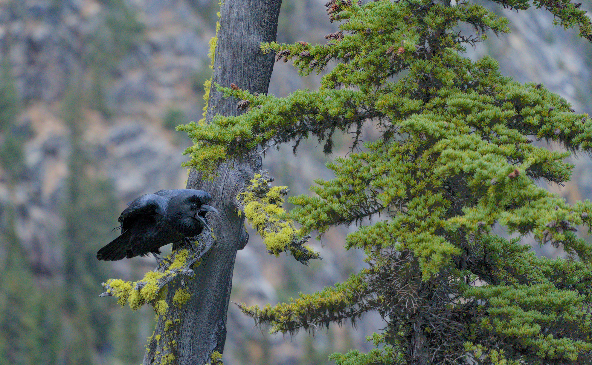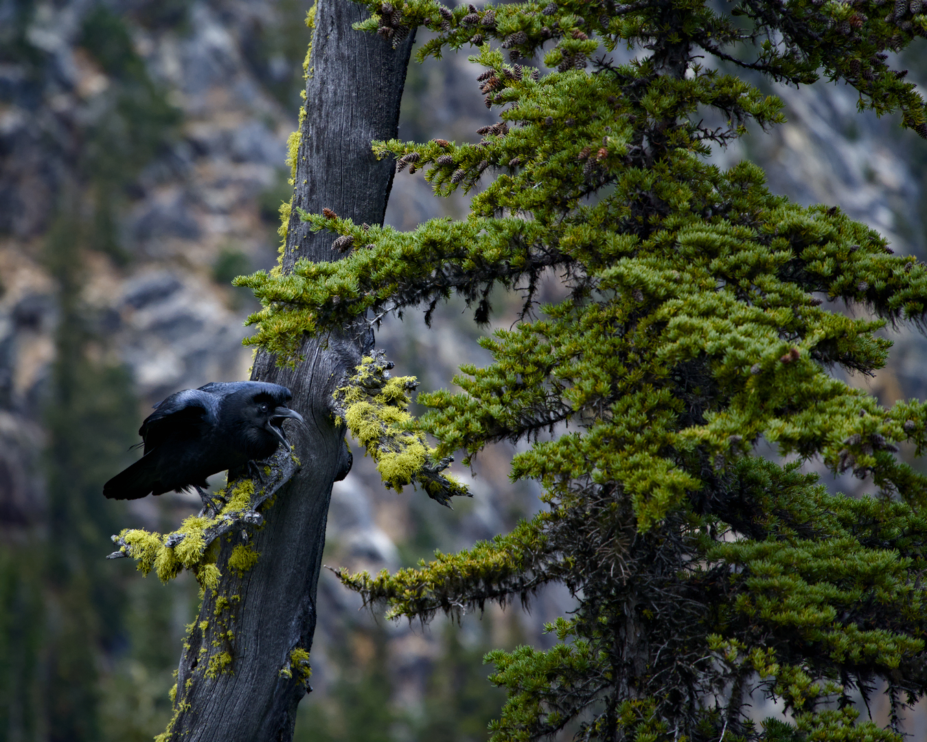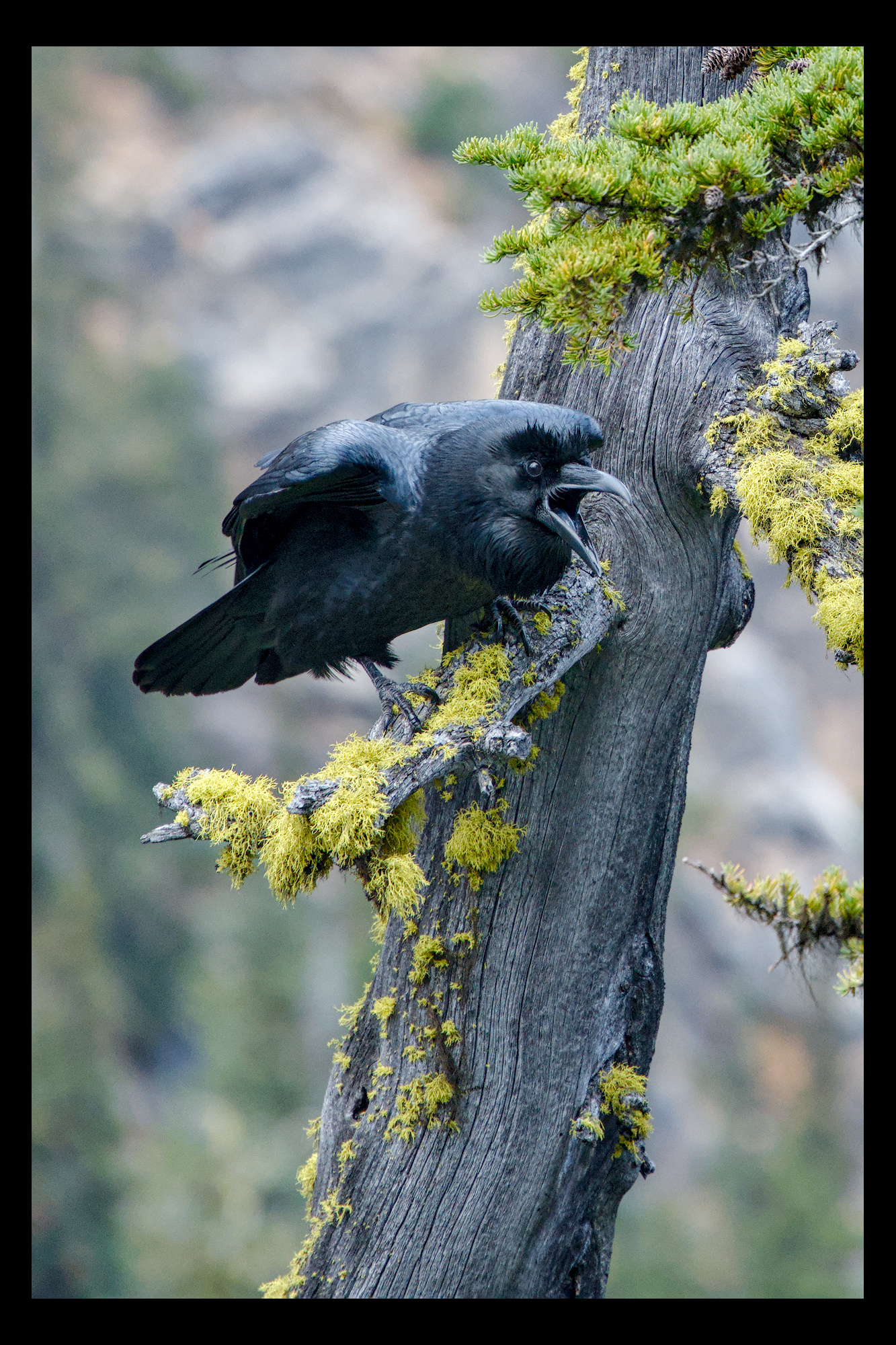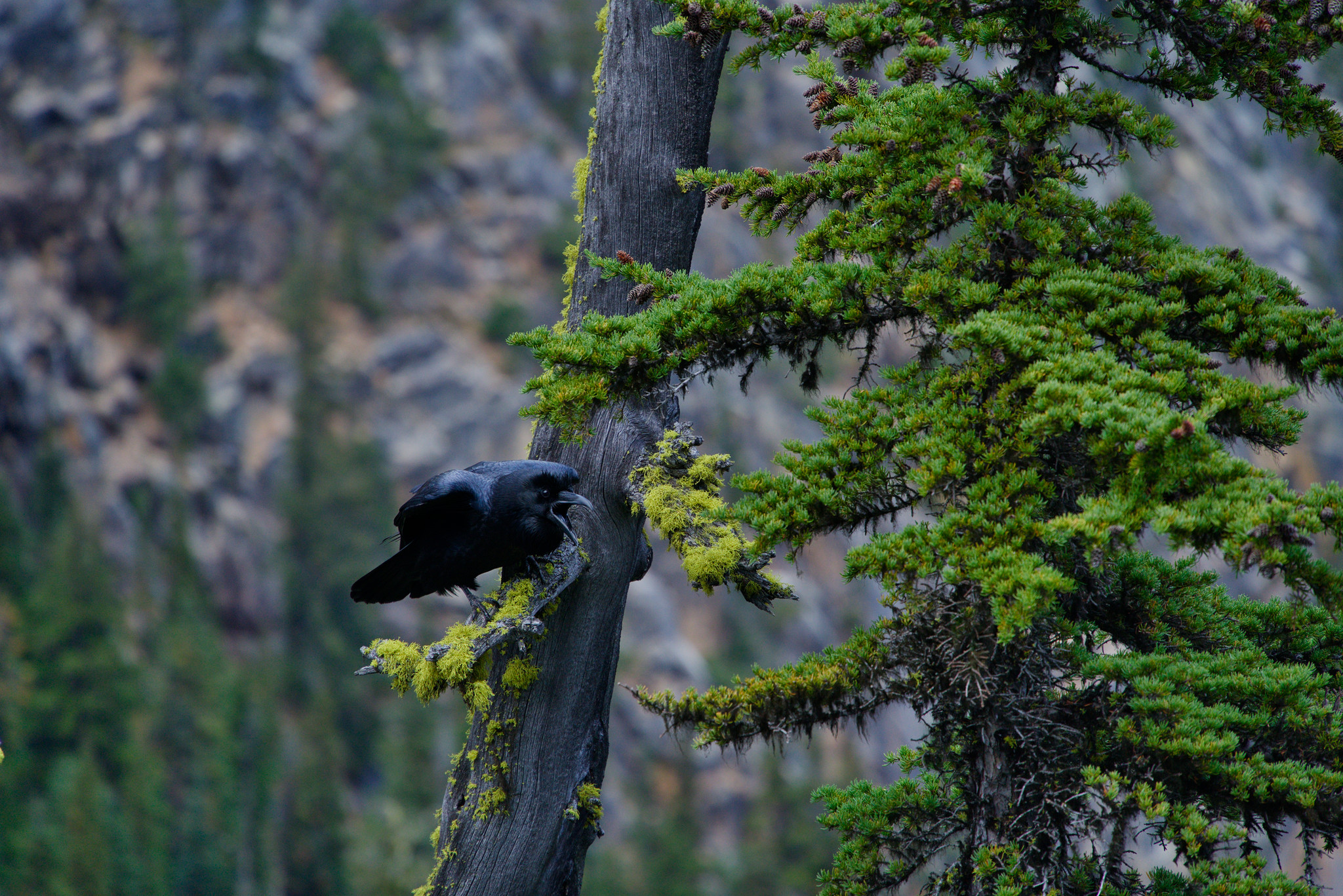 This was one of a pair of ravens calling at us while we explored a mountain pass last month. This area is a well-trodden observation deck overlooking the pass, so I imagine their calls were less to ward us off and more asking from freebies.