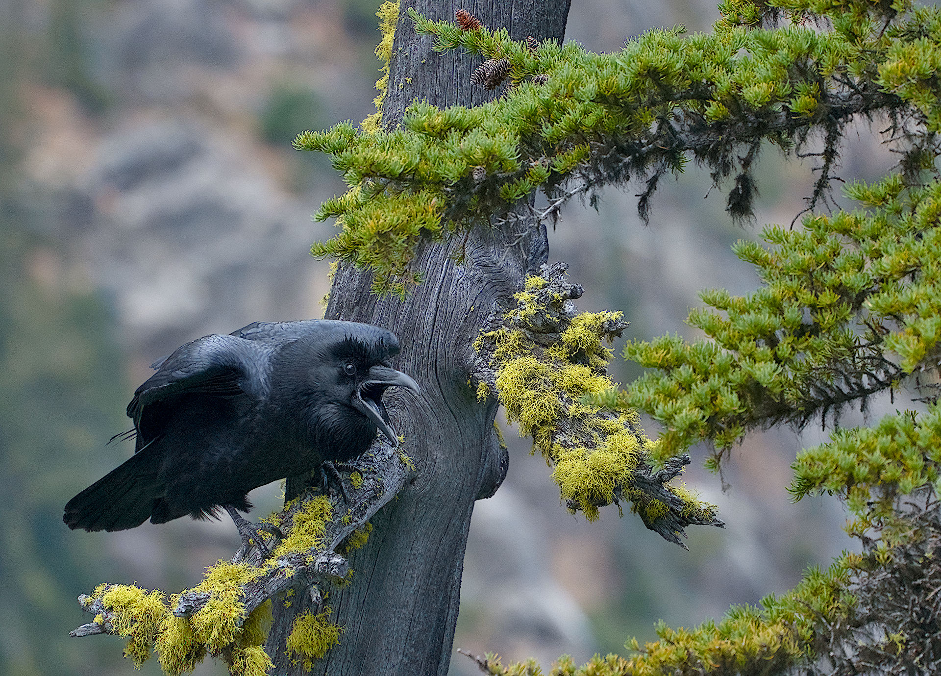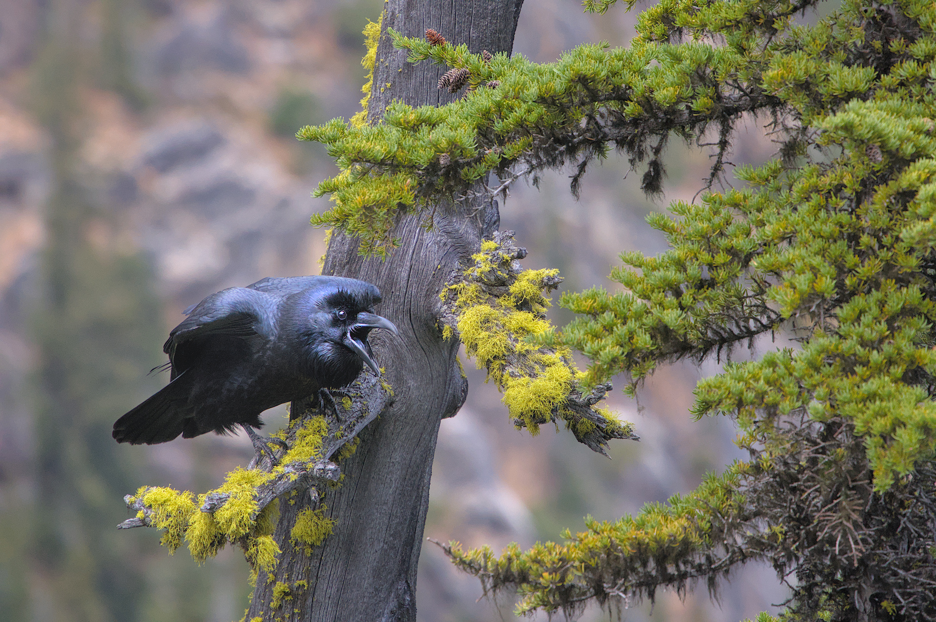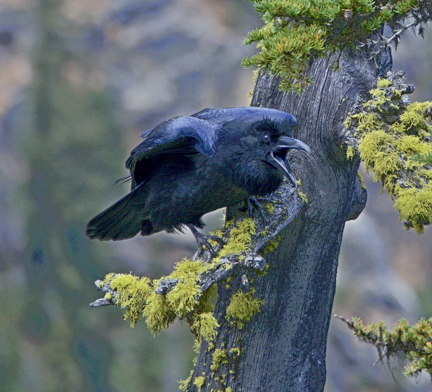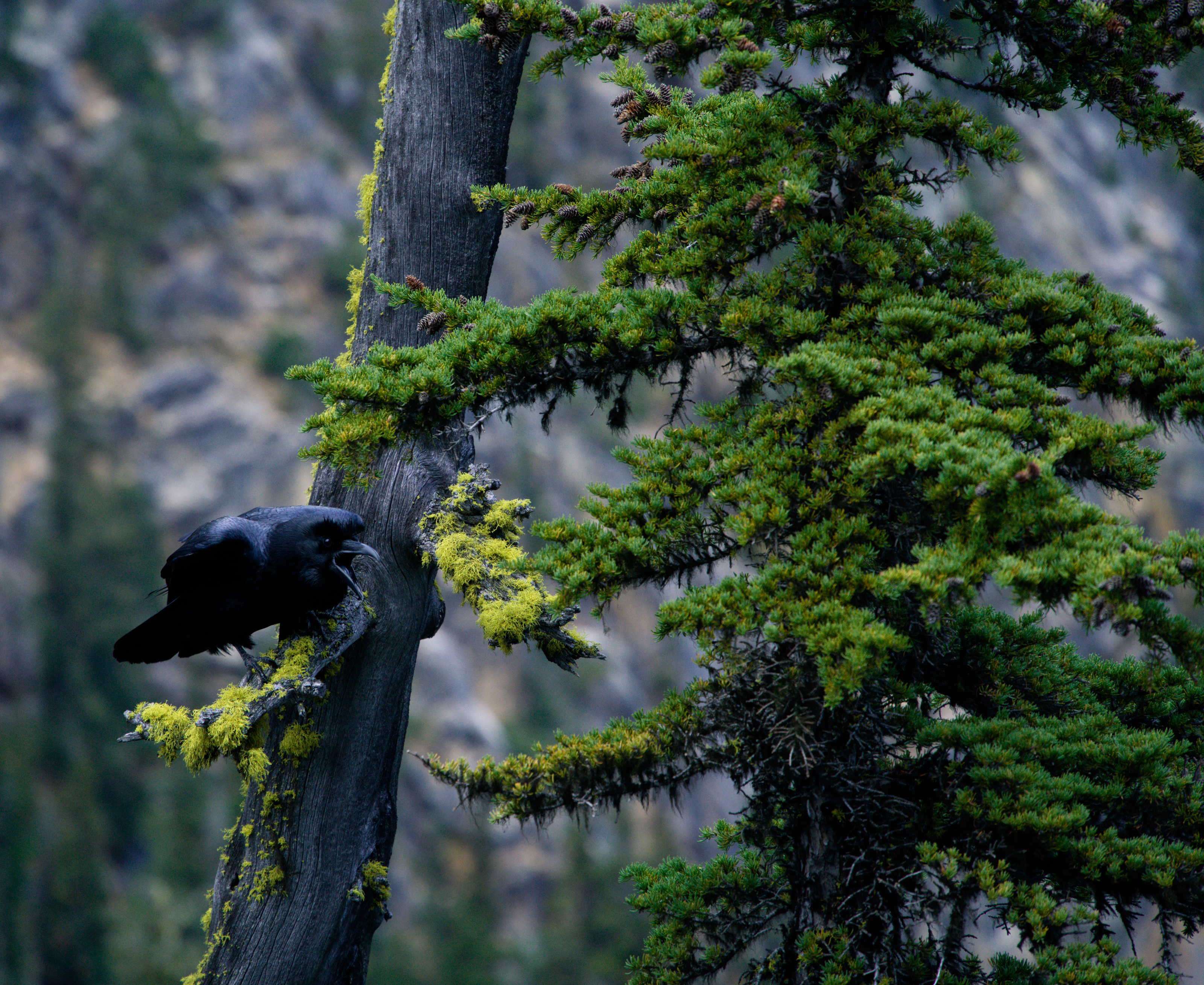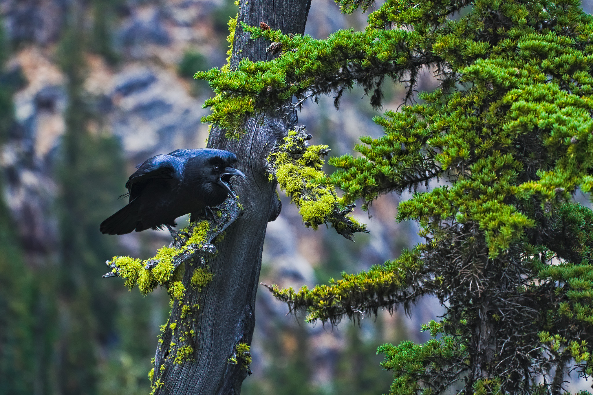 This was one of a pair of ravens calling at us while we explored a mountain pass last month. This area is a well-trodden observation deck overlooking the pass, so I imagine their calls were less to ward us off and more asking from freebies.