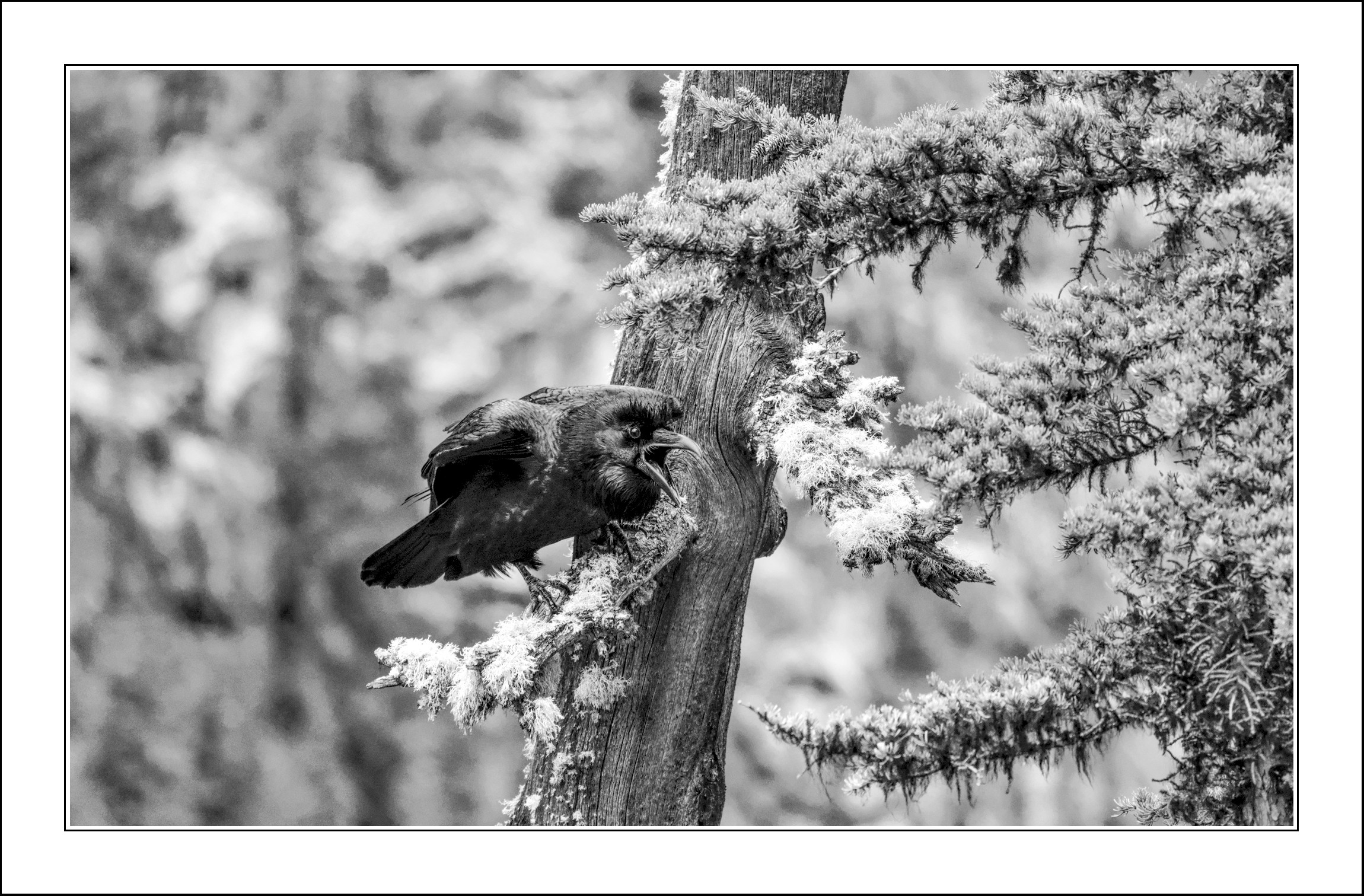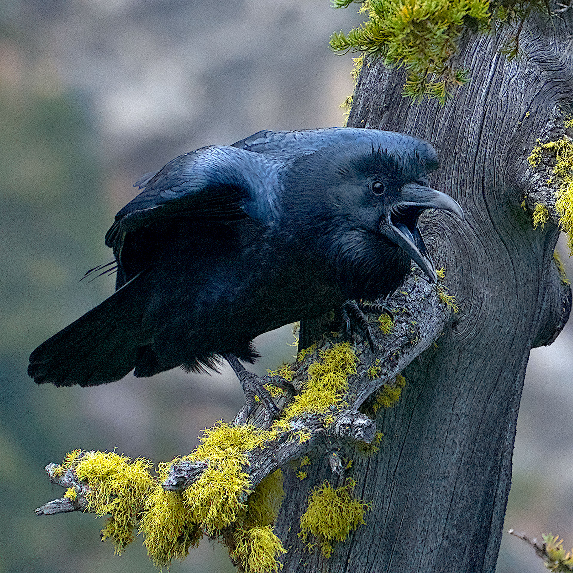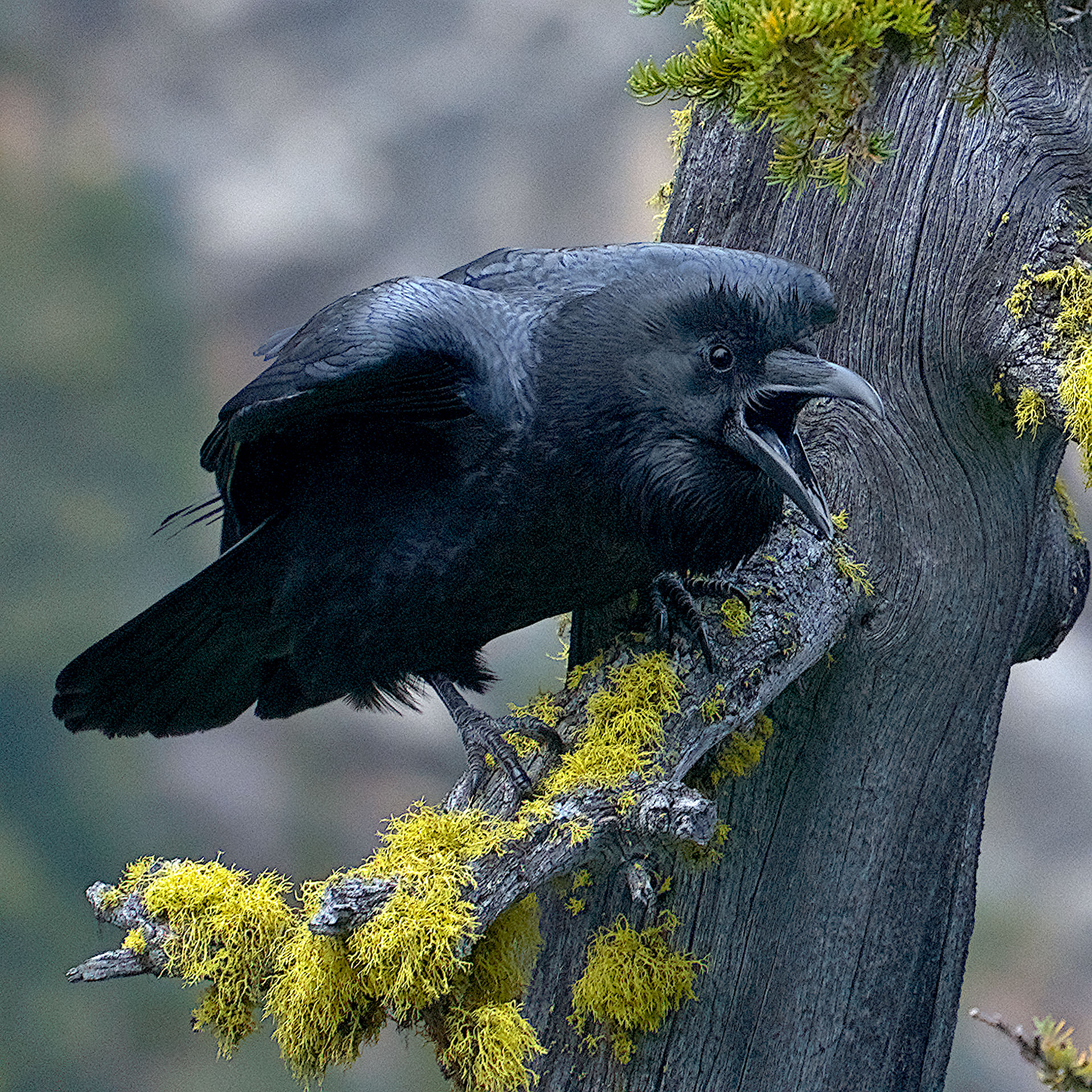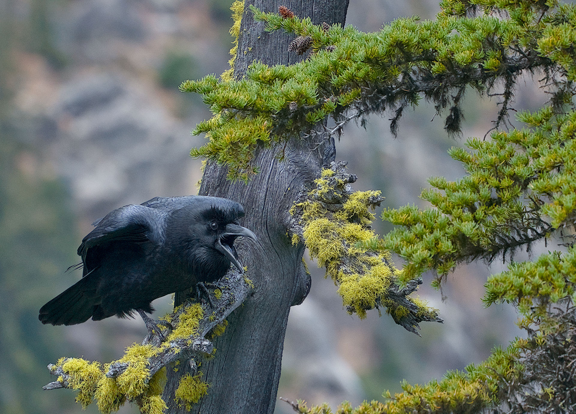 This was one of a pair of ravens calling at us while we explored a mountain pass last month. This area is a well-trodden observation deck overlooking the pass, so I imagine their calls were less to ward us off and more asking from freebies.