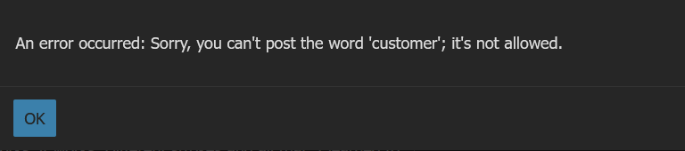 Are you flippinâ serious? I just got a warning / hard stop when I tried to post this message: