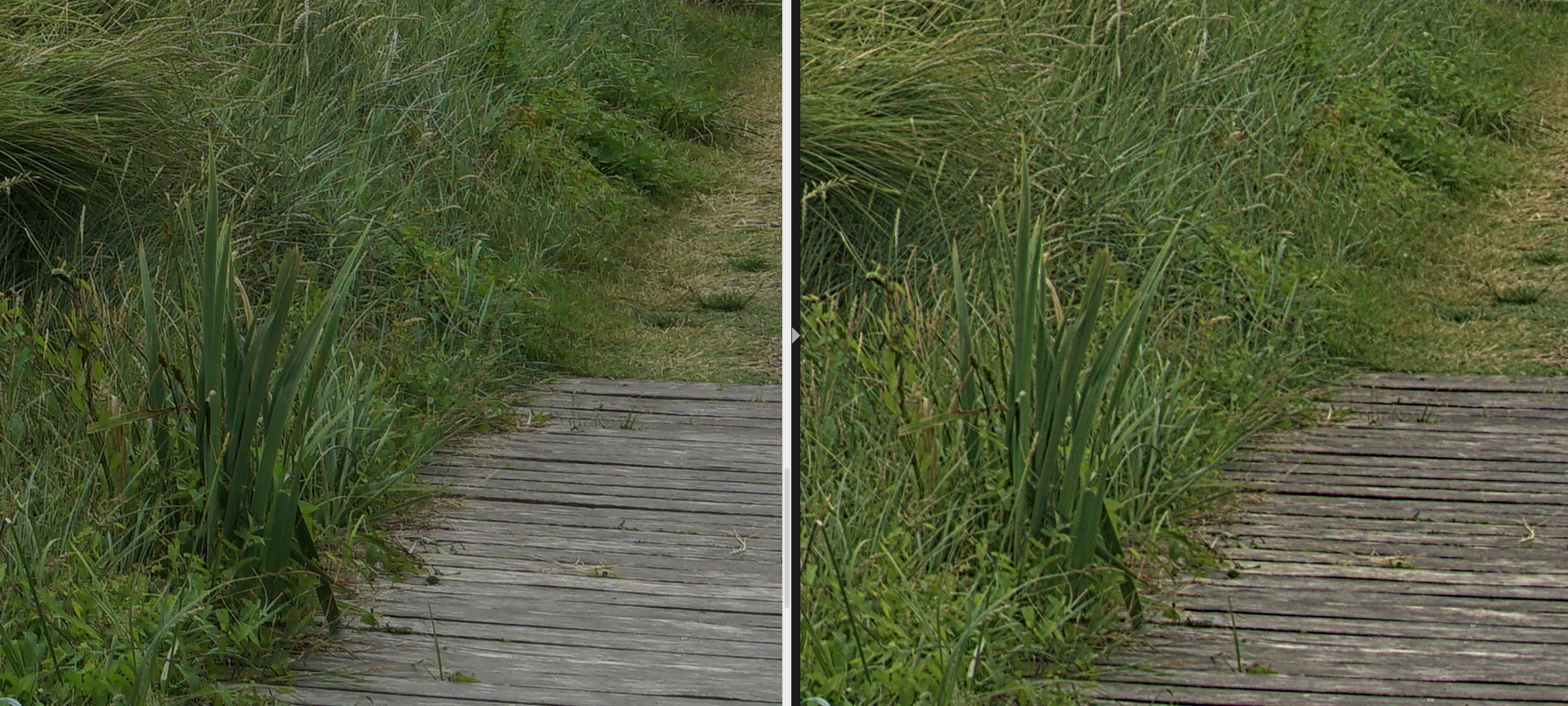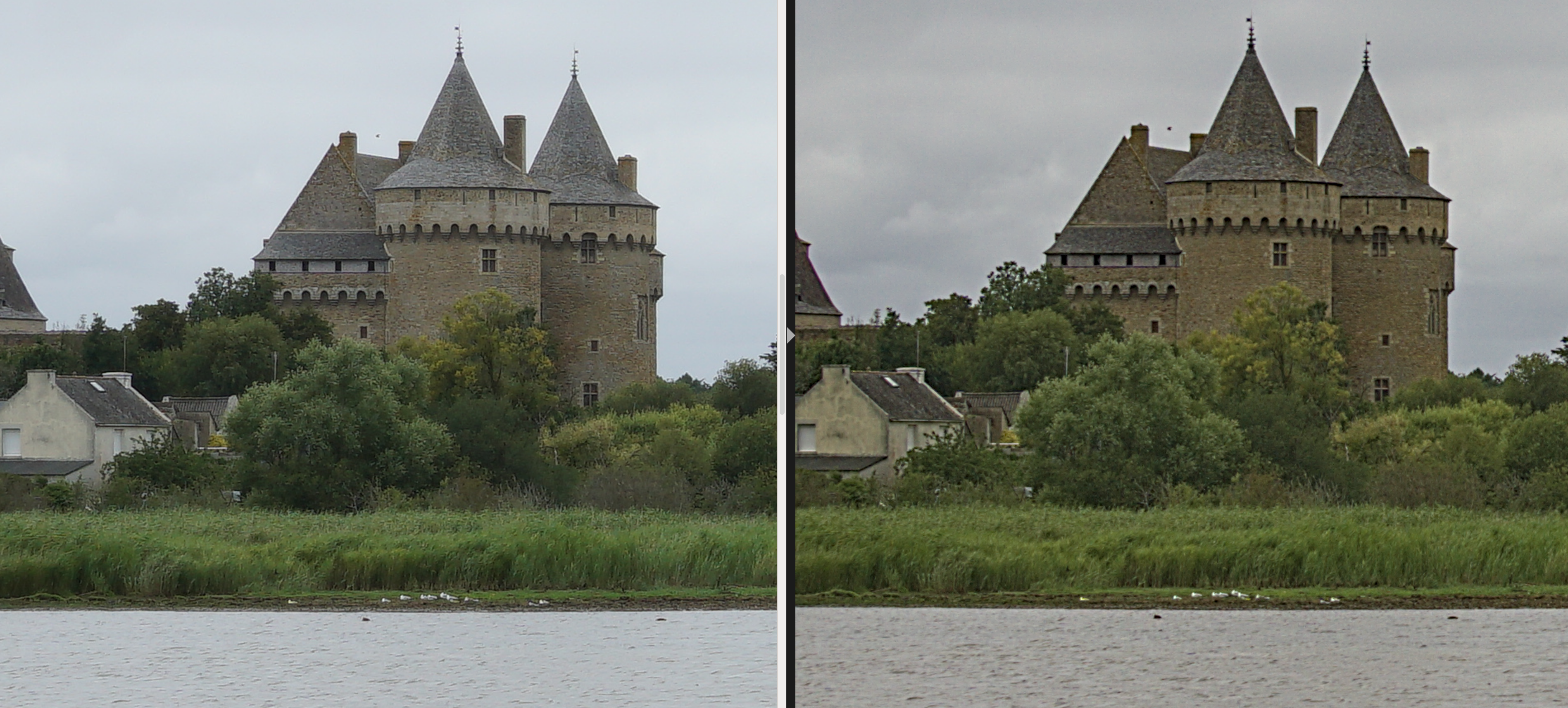 What is noticeable is that the noise reduction of the ooc takes away a lot of detail. For example in the walls of the castle, in the vegetation, in the water or in the structure of the wooden planks. The sky also suffers a lot in the original JPG.