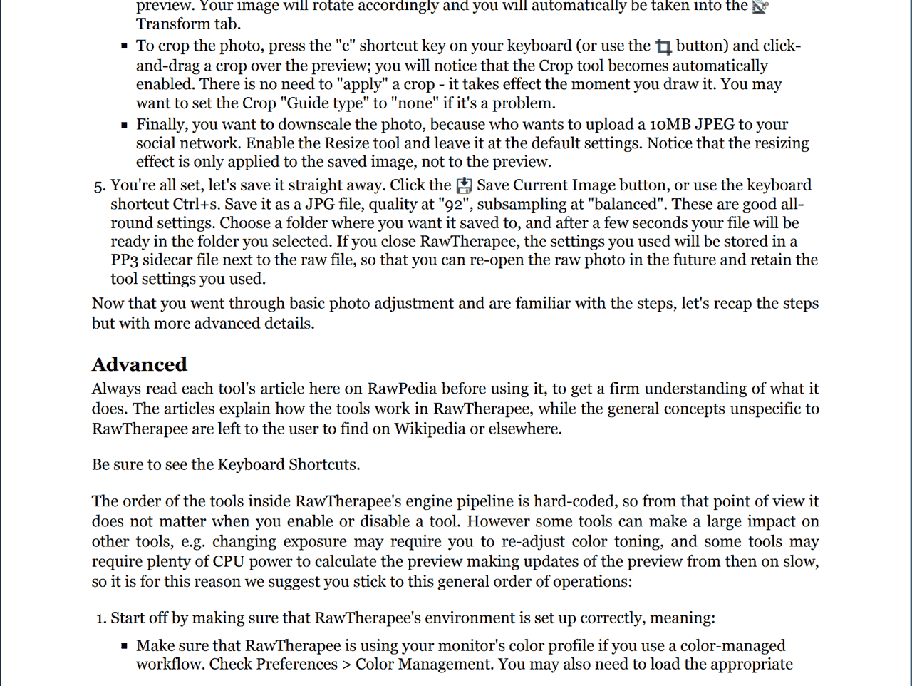 Hi: I’m new to Rawtherapee and also to this blog. I to download the most recent snapshot of Rawpedia and found the same issue, would anyone be interested in having the snapshot in a Windows Word document docx.