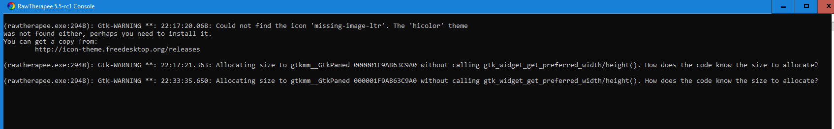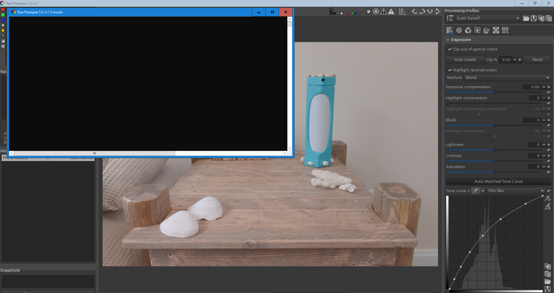 Rawtherapee console (@Carmelo_DrRaw and @gaaned92 builds)