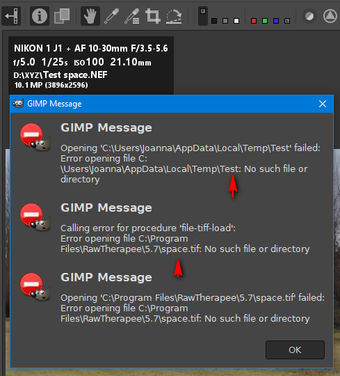 On file-rawtherapee.exe in Gimp.