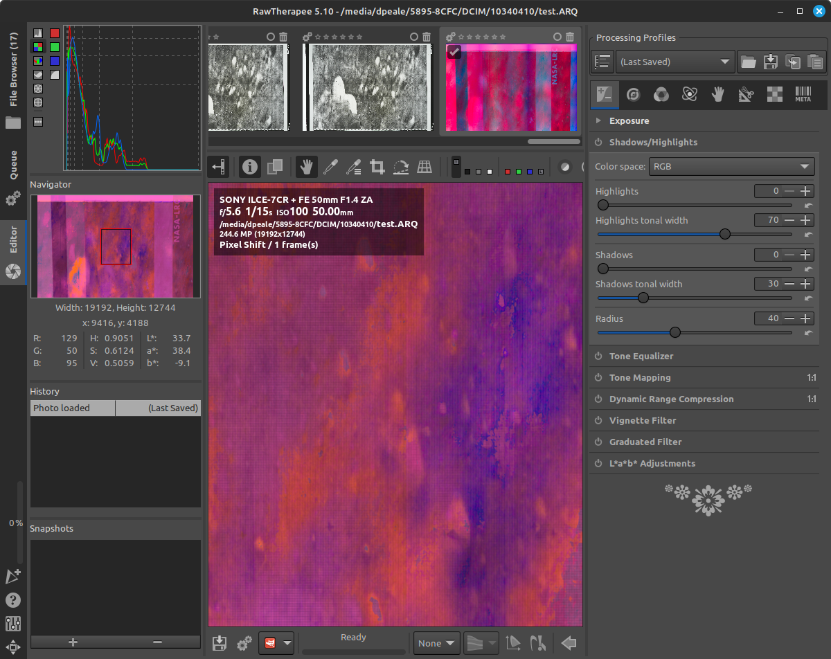 If someone could generate the .ARQ file using Sony’s software to see if RawTherapee handles that correctly, that would be helpful.