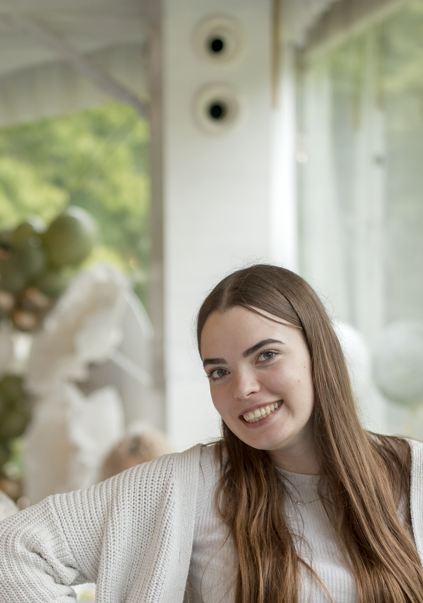Too little contrast on her white sweater