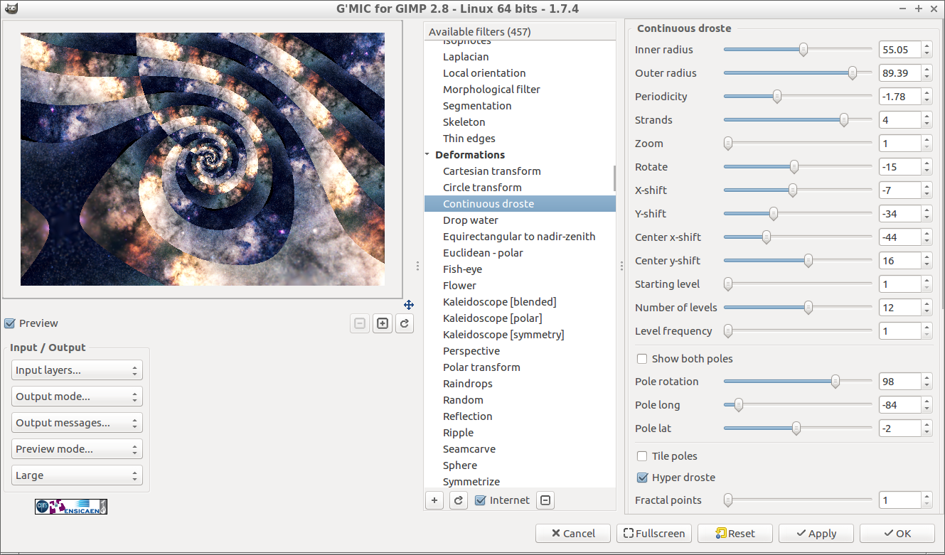 I’m happy to announce the release of a new version (numbered 1.7.4) of the G’MIC image processing framework. This is a minor release in terms of new functionalities, but it has some important bug fixes. As always, I encourage upgrading to this new version as soon as possible .