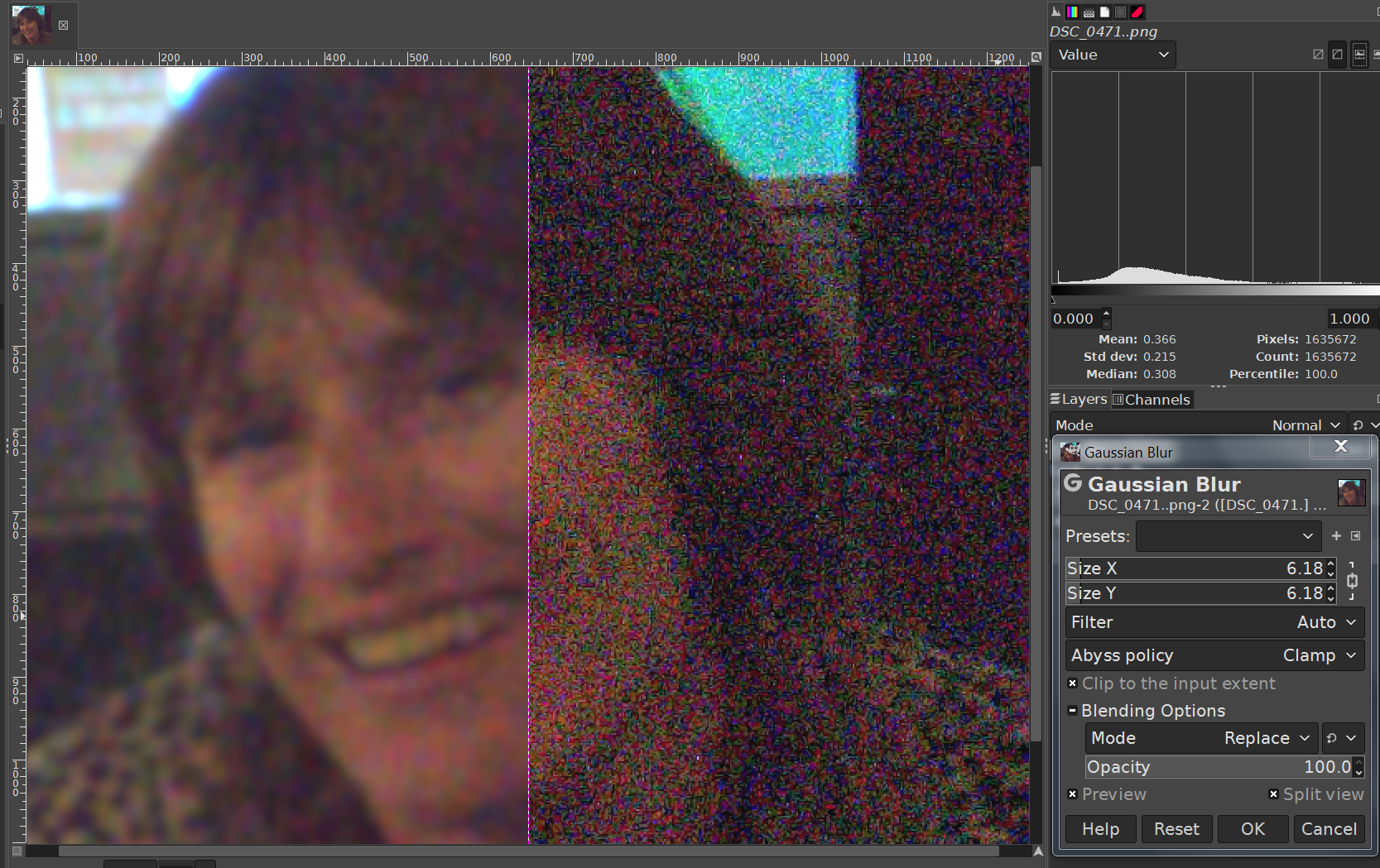I’m really liking the effects Raw Therapee is giving me, but I’m wondering… is there a blending tool that can help fill in this kind of post-noise-removal dot effect? I feel like there should be, and that it’s possible. I could do it with blur/healing and a lot of time and effort in Photoshop. But is there a filter I can use?