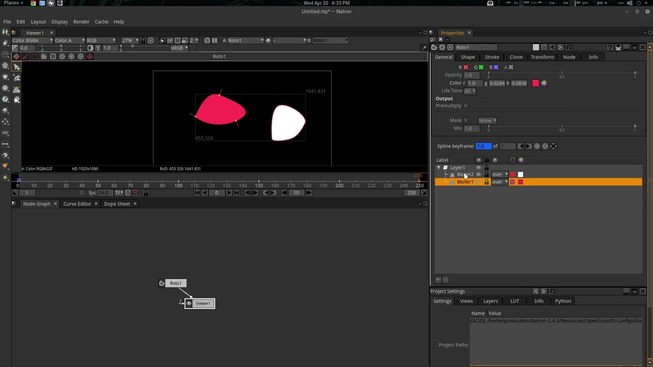 I can have multiple roto shapes each with an outline color and a painting color that are persistent even after reloading the project.