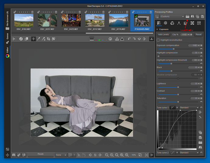 Open YOUR picture and load the “P1020405.RW2.pp3” file by clicking on the “Load Profile” button.