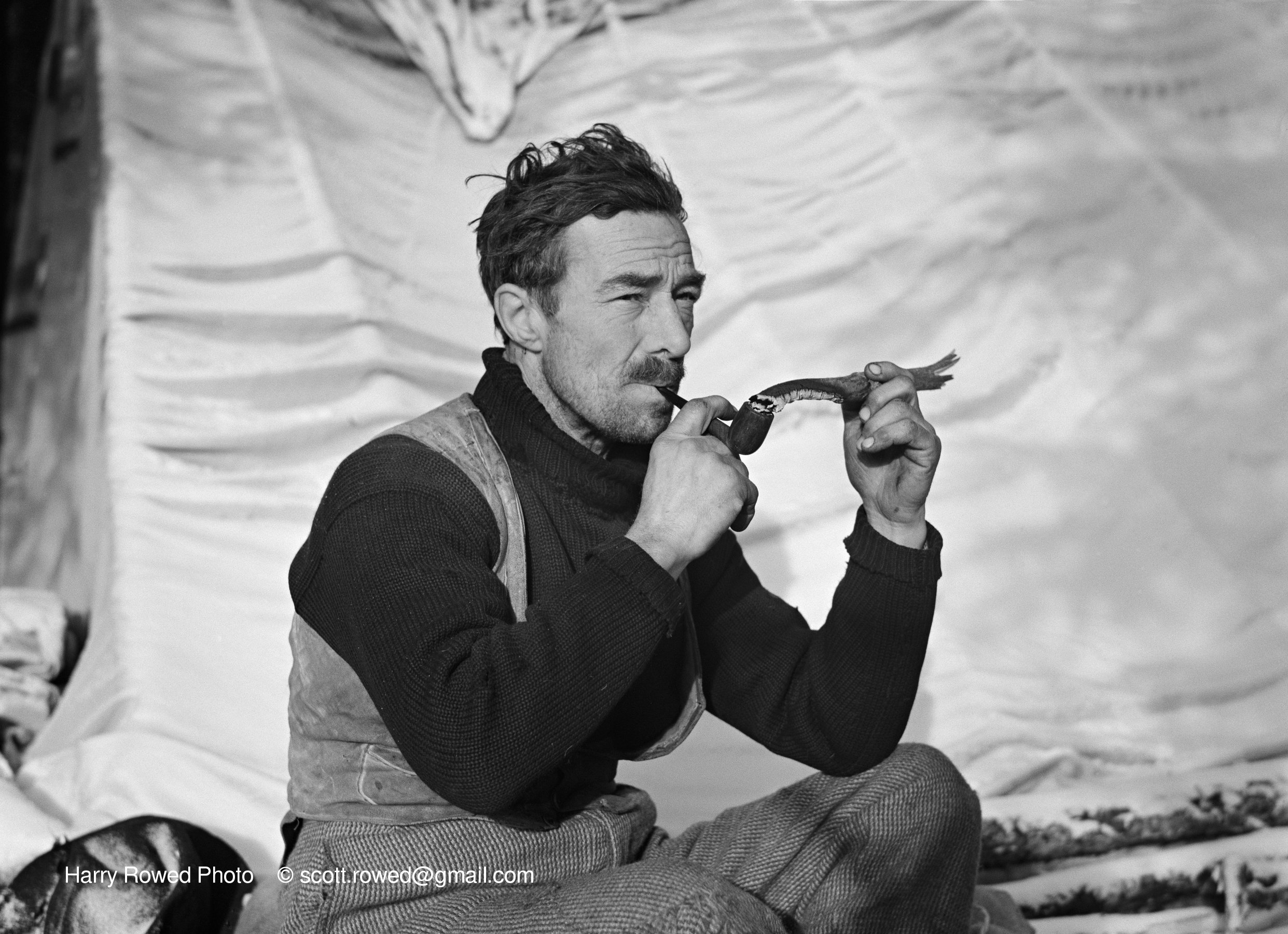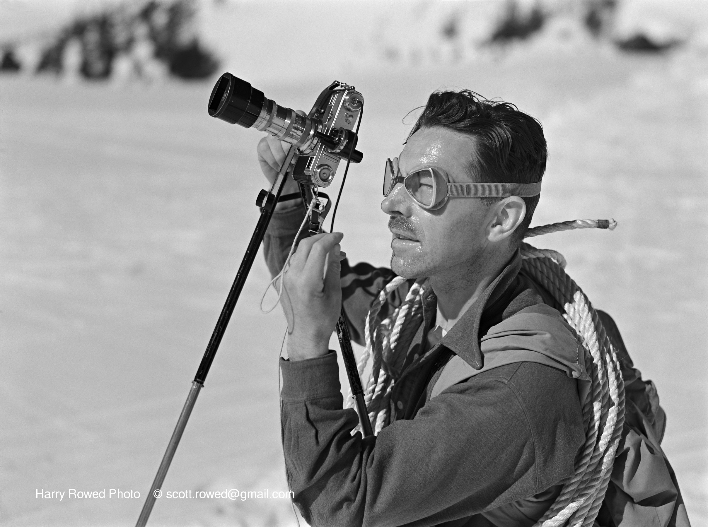 I’ll post some photos of the setup later, but in the meantime a couple notes about the photos. The young woman climber, Margaret Stock, and the photographer were shot in 1939 on 3x4 inch B&W film (maybe Speed Graphic). The man with the pipe (Fred Brewster, a legend in the Canadian Rockies) was taken sometime in the 1940s on 6x6 cm film (probably Rollei twin reflex).