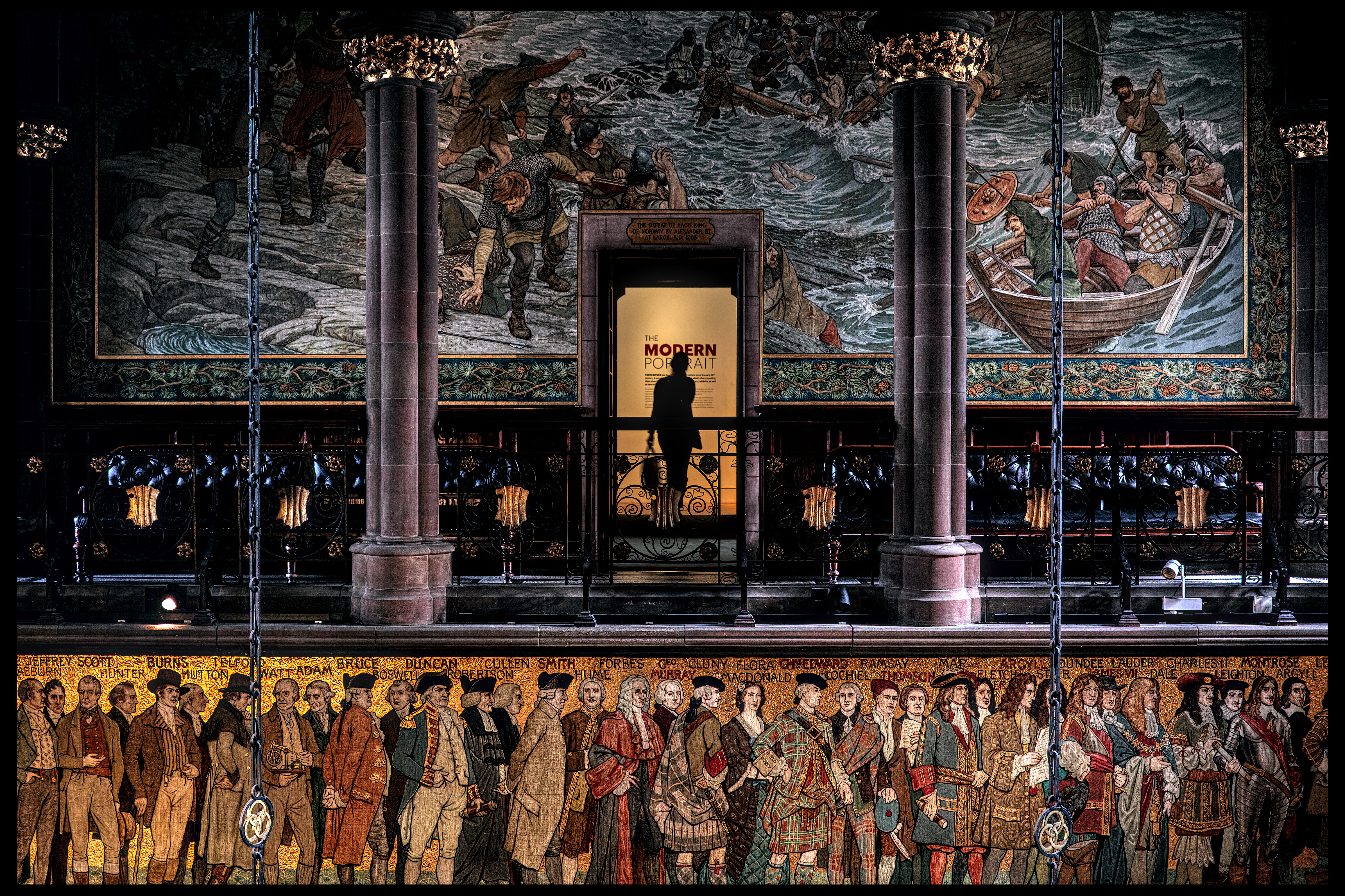 I wasn’t intentional but the contrast between the female visitor exiting from the line of all but exclusively dead white males into the “Modern Portrait” exhibition stood out, though maybe it’s a bit on the nose.