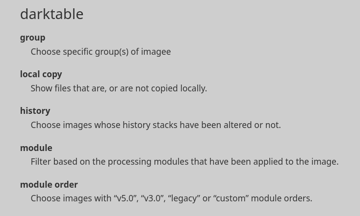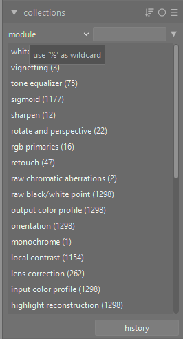 Filter based on the processing modules that have been applied to the image.