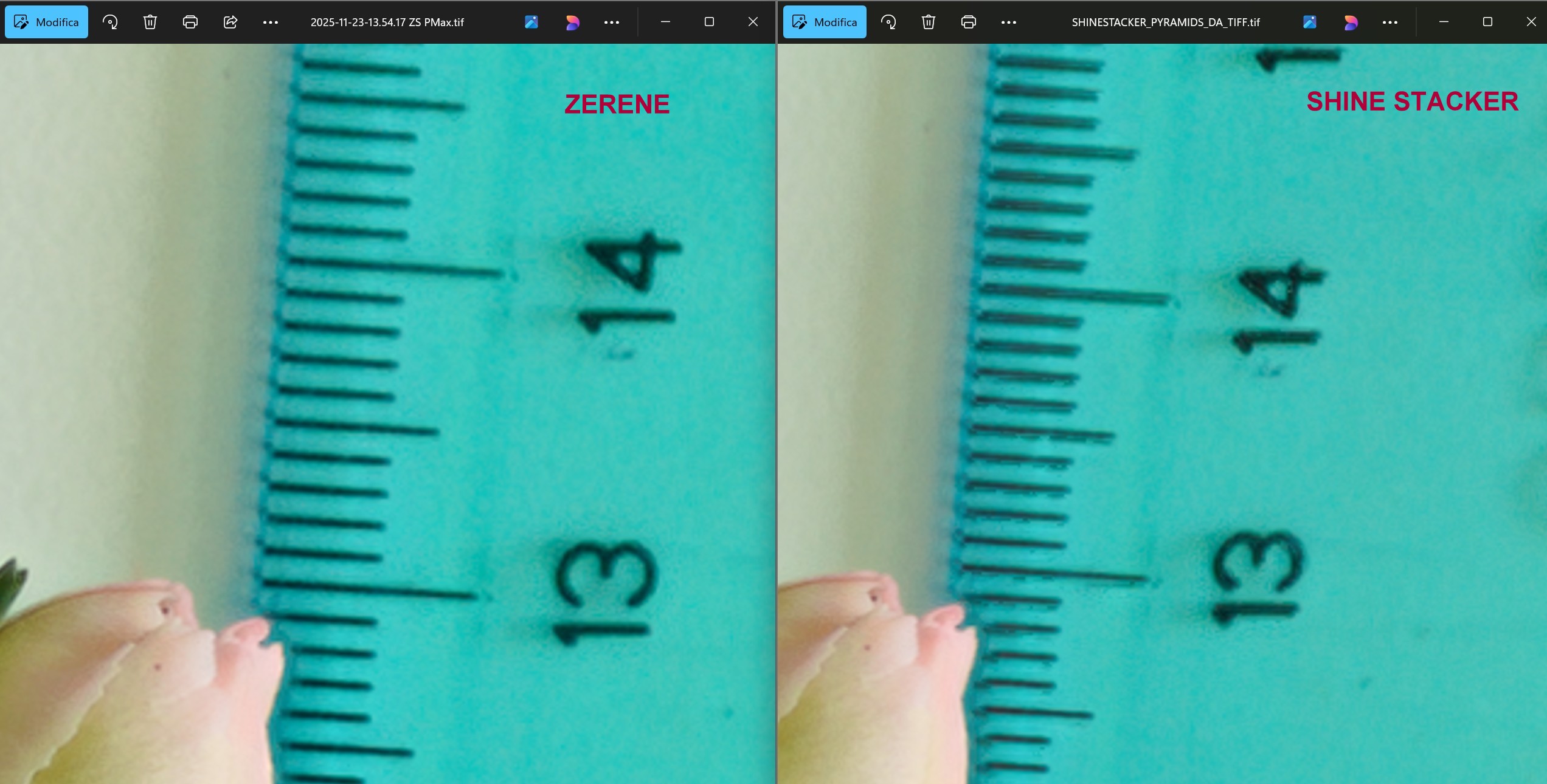 Take a look at the artefacts of the lines in the ruler with Shine Stacker: