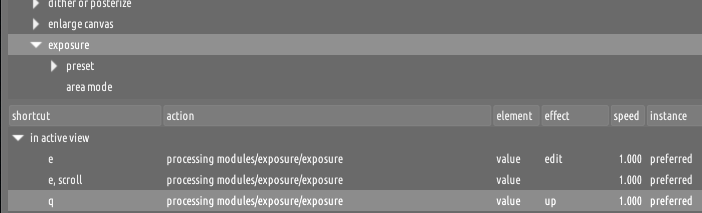 Every day I check in here and learn something about darktable. I was aware of the shortcuts because I have several set up already. But it somehow escaped me that I could use a keypress while moving the mouse (or scrolling) to directly access the slider(s). I connected [hold e+mouse] to exposure, and it’s way easier to use than the module slider. Additionally, it doesn’t pop the exposure panel open, so that I can navigate to the next photo with the arrow key and I don’t have to take my eyes off the photo the entire time. Brilliant!