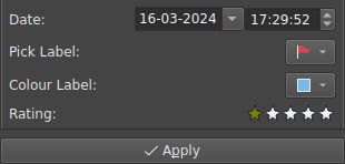 Is it possible to see the ratings (either stars or the coloured flags) in the preview mode in Digikam?
