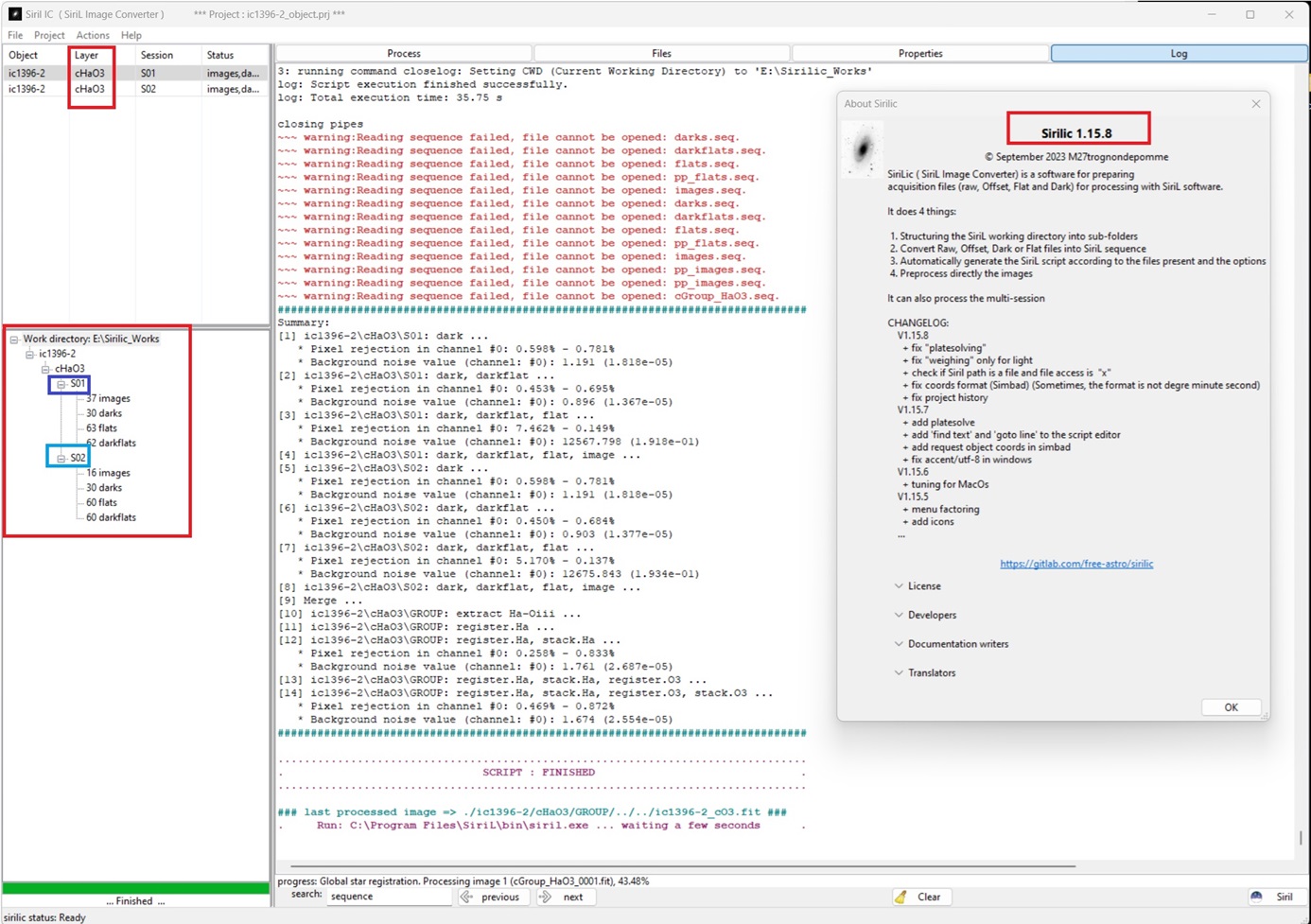 I’m using Siril to process my images, but while shooting multiple night sessions for the same target that does required Flats and Dark/Flats for each sessions i’m using Sirilic and it is working great.