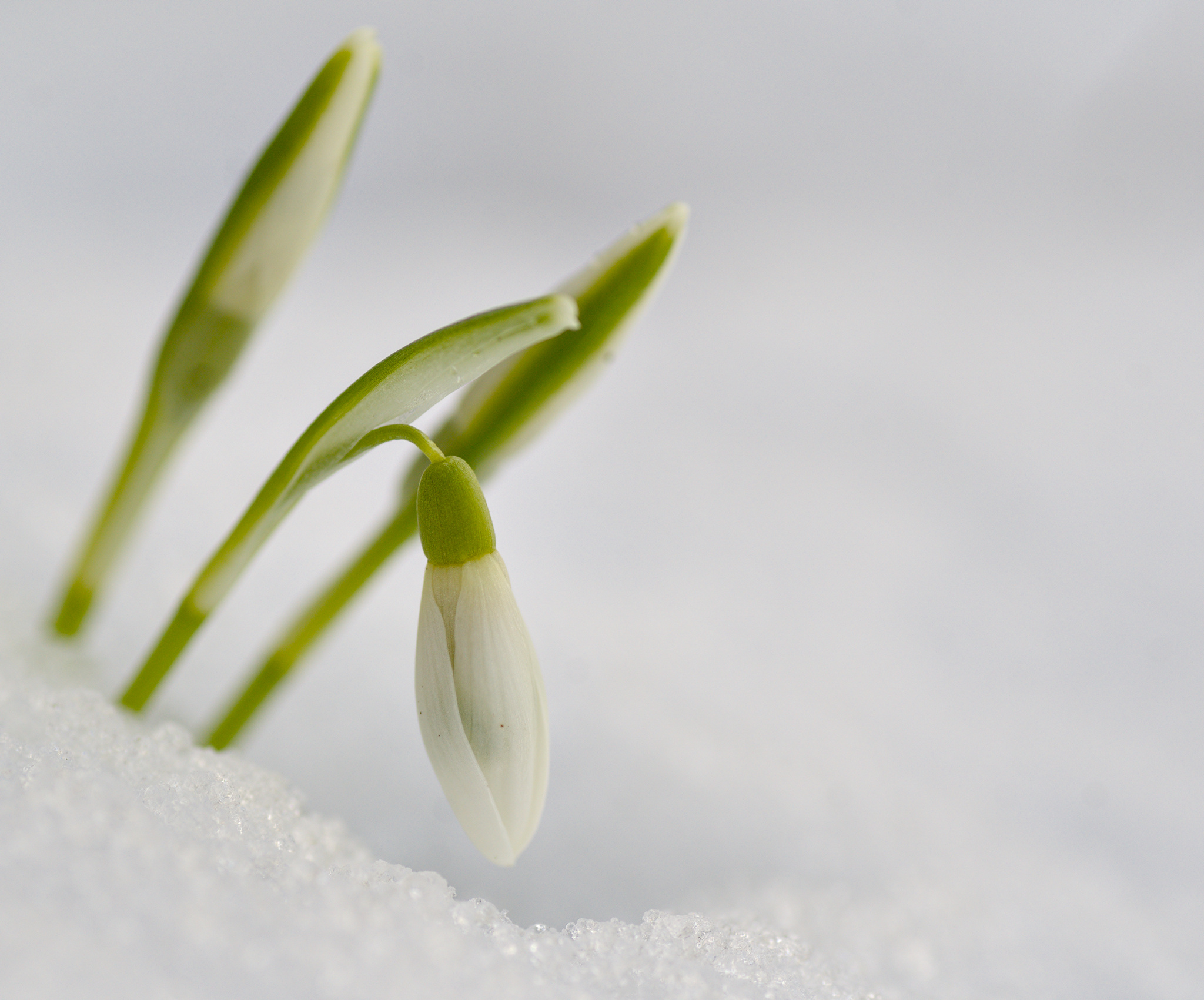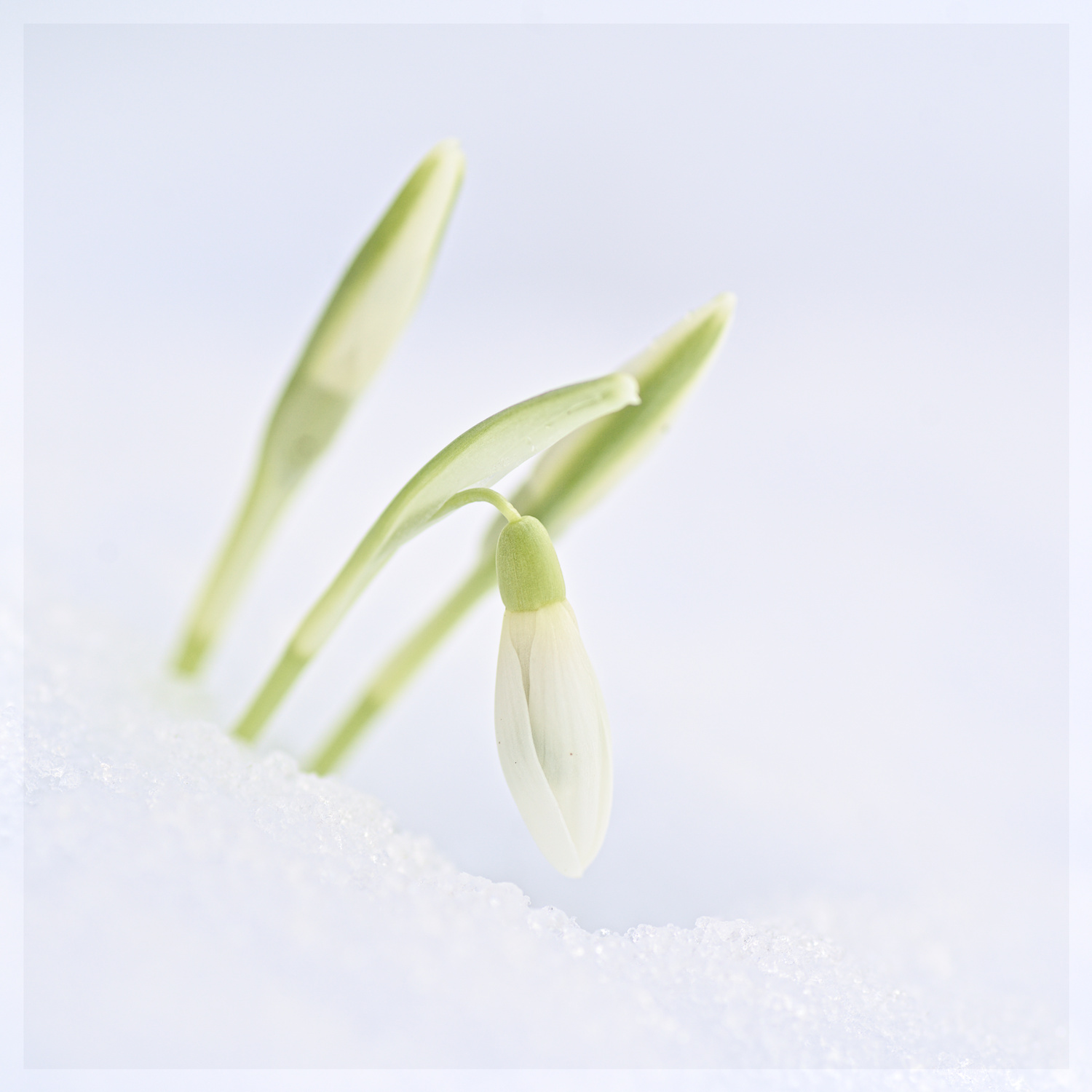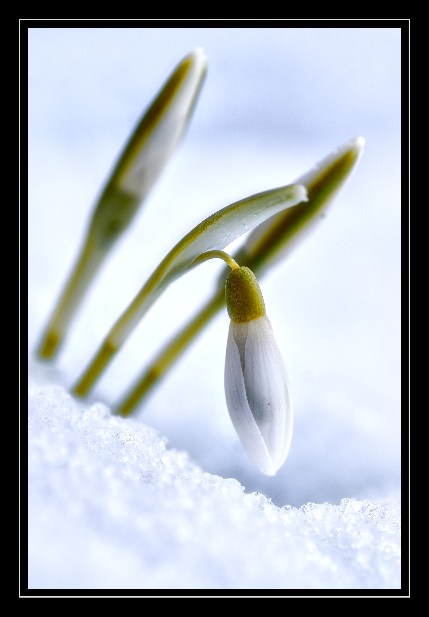 Gave my new-old Tamron 90 mm macro 2.8 a first test drive on the first snowdrop in our garden. I shot these squatting down above the snow and am very pleased with the results. In german snowdrops are called Schneeglöckchen which loosely translates to little snowbell.