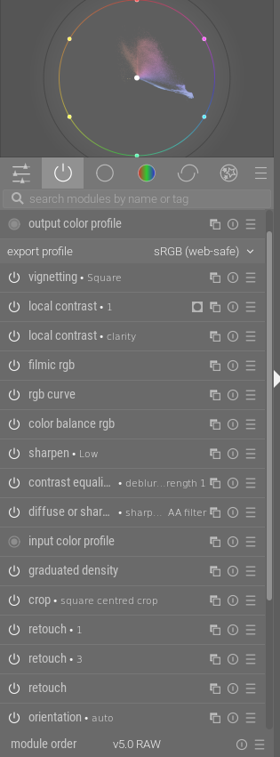 I didn’t try to cover everything. Remember there is “input color profile” at the beginning, and that typically most dt modules operate in the large color space Rec2020. It’s good for editing but the gamut is larger than that of an sRGB monitor.